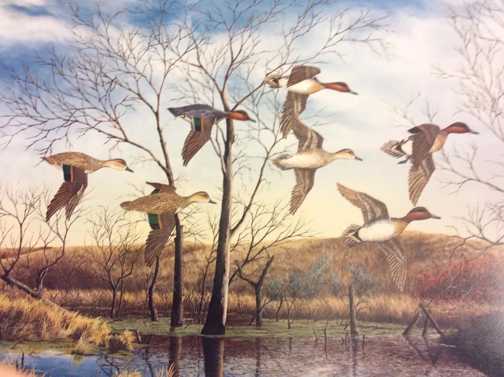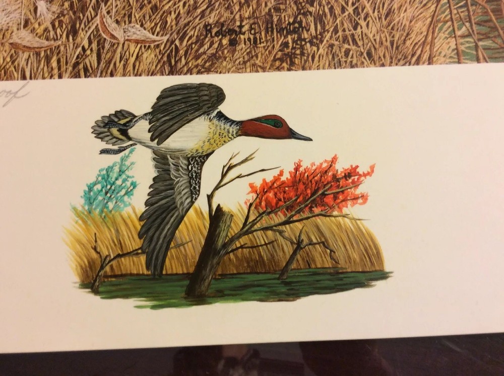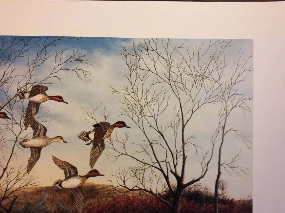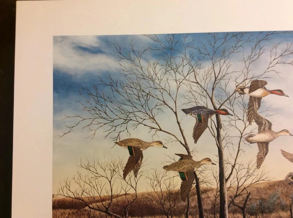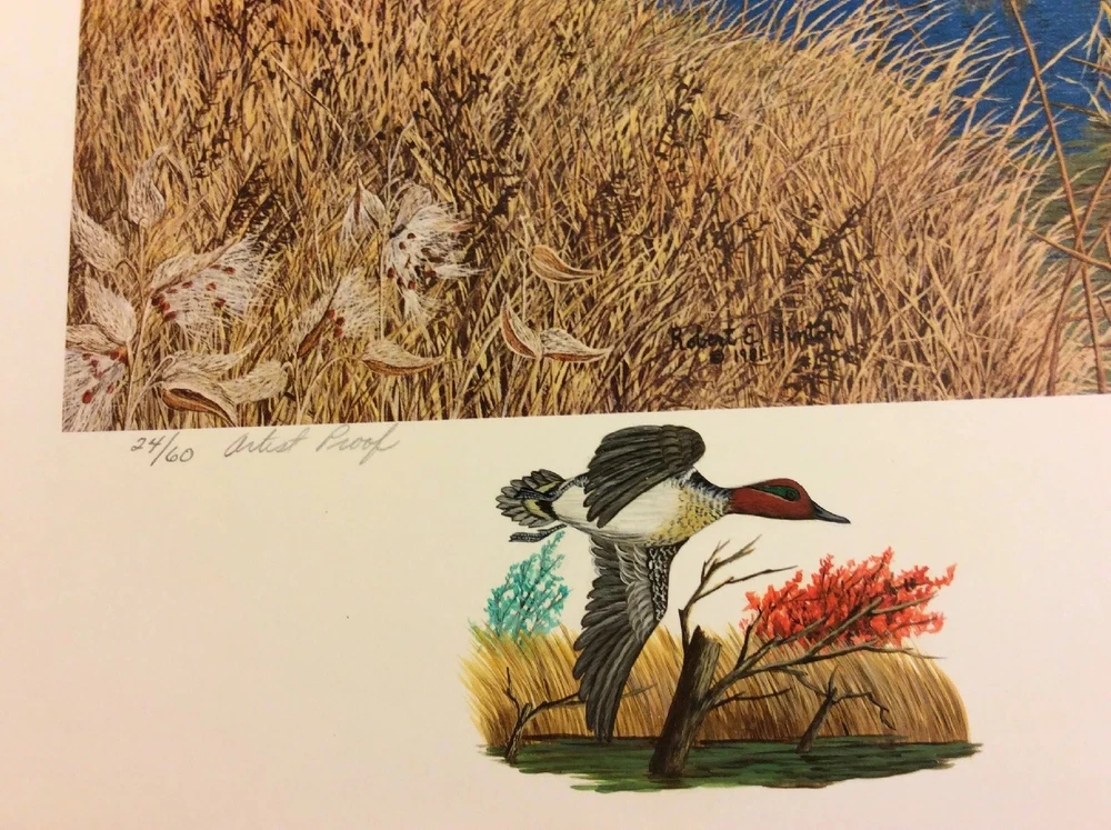 Robert Hinton, “ Dipping In” 24/60 Artist Proof, Remarked, 1981.. This is every Duck Hunters Dream,Green winged teal,& a beaver pond,& your at the ready. Large colored Remark, and a Artist Proof, 24/60. Artist: Robert Hinton Title: “ " Dipping In” Limited: Yes, 24/60. Artist Proof, Remarked Unframed: Yes, Condition: Excellent, No Damage Size: 21" x 28" Asking : $85.00 Shipping: $18.00 postal rates increasing, January 2019.fully insured , in a Tube. Returns: None Payment: Pay Pal Thanks: Arlen