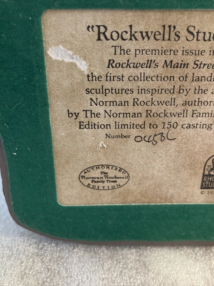 This beautiful Christmas village from Rhodes Studio is a must-have for any collector. Featuring the iconic “Rockwell's Studio”from Norman Rockwell, this ceramic and porcelain village is perfect for any room in the house. The square-shaped village has a matte finish and a 3D effect that brings the Village to life. Numbered