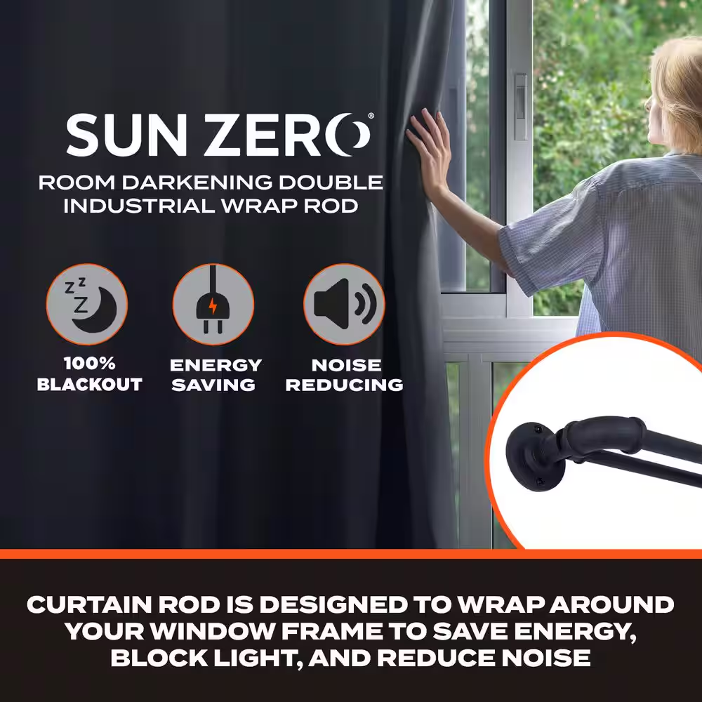 Store New Arrivals Add to Favorite View Feedback Contact Room Darkening 66"-120" Adj 3/4" Double Wrap around Industrial Curtain Rod Black Description Adjustable Rod Adjustable Features No Additional Features Finial Included With Finial Finish Matte Black Finish Family Black Included Installation/Mounting Hardware,Rod/pole Individual/Set Set Material Steel Mount Type Side Mounting Hardware Included Yes Number of Brackets Included 3 Number of Rods Included 1 Product Weight (lb) 4.14 lb Returnable 90-Day Rod/Pole Type Double Shape Round Style Industrial Weight Capacity (lbs) 20 lb Manufacturer Warranty No Warranty Bracket Projection (in) 3.75 in Maximum Length (in) 120 in Minimum Length (in) 66 in Product Height (in) 2.29 in Product Width (in) 3.75 in Projection (in) 3.75 in Rod Diameter (In) 0.75 in Save energy, block light and reduce noise Room darkening industrial curtain rod design Pairs well with sun zero curtain panels The Sun Zero Industrial 3/4 in. Room Darkening Double Curtain Rod is designed to wrap around your window frame to save energy, block light, and reduce noise. The textured matte black finished industrial styled telescoping pipework steel rod is adjustable from 66-120 in. to fit a variety of window sizes and projects 3.75 in. from the wall. Use on larger windows in larger rooms, like your bedroom, dining room, or living room to hang light, medium, or heavyweight curtains. The textured finish makes this curtain rod ideal for hanging curtains with grommets. The double rod adds a layered look to your curtains, giving you more control over how much light to let into your room throughout the day and providing more insulation during colder months. To layer, place heavier, decorative curtains on the 3/4 in. diameter front rod and lighter, sheer curtains on the 5/8 in. diameter back rod. Pair with Sun Zero grommet curtain panels (sold separately) to maximize energy saving, light blocking, and noise reducing features. Blackout Curtain Rod Set Includes: one telescoping steel double curtain rod with 2-mounting brackets, one center support, screws, drywall anchors, and installation instructions. Sun zero industrial 3/4 in. blackout double curtain rod is designed to wrap around your window frame to save energy, block light, and reduce noise Textured telescoping rod is adjustable in length from 66-120 in. to fit your window and projects 3.75 in. from the wall 3/4in. Dia. double rod is suited for larger windows in larger rooms of your home such as living room, dining room, or bedroom Pair with sun zero grommet curtain panels (sold separately) to maximize energy saving, light blocking, and noise reducing features Includes: 1-telescoping double curtain rod with 2- mounting brackets, 1-center support, screws, drywall anchors, and installation instructions In matte black finish Care instructions: wipe clean with damp cloth ABOUT US We offer the best prices around on high quality products. Our E-store includes tools, general home, garden items and more. SHIPPING We are always working hard to ensure your package arrives as soon as possible. Please understand that some factors like weather, high postal traffic, and the performance of shipping companies are outside of our control. We offer free shipping to the lower 48 states and ship within 4 business days of payment, usually sooner. We do not accept P.O. Boxes. Please provide a physical address. RETURNS We offer a 30-Day Return Policy on items which you are not completely satisfied with. You have the option for a full-refund or an exchange of the item. No returns are available on items shipped outside of the USA. PAYMENT We accept PayPal. CONTACT US This page content is yet to come Please ad us to your favorite seller and visit again later Thank You CUSTOMER SATISFACTION We try our very best to make sure every customer is completely satisfied. If there's a problem, message us! We're happy to help. WE ACCEPT Copyright Β© 2017 AutoDs. | All Rights Reserved