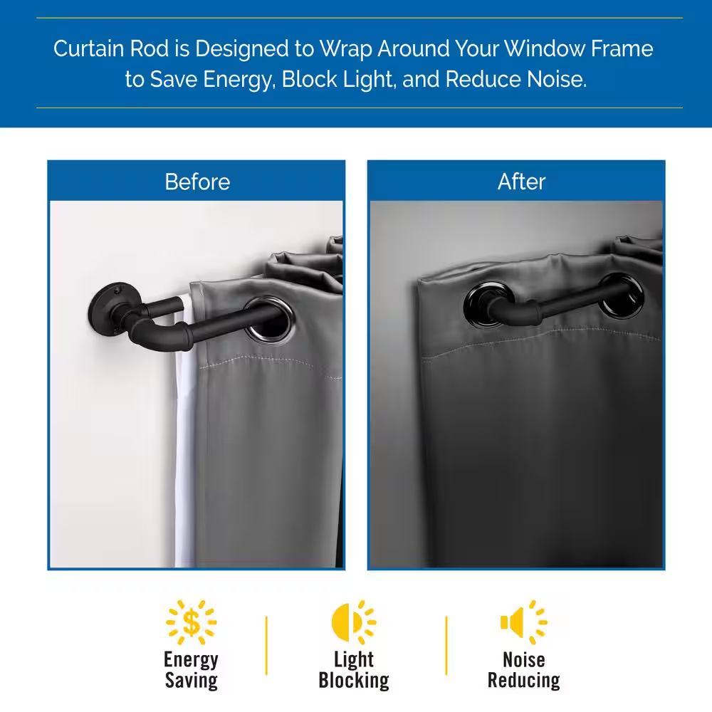 This curtain rod is a game-changer! The industrial black steel looks sleek, and the double-wrap design ensures no light sneaks in. It was super easy to install with the included brackets, and the adjustable length fits perfectly in my space. Sturdy, stylish, and totally worth it—my room stays pitch black, just what I wanted!
