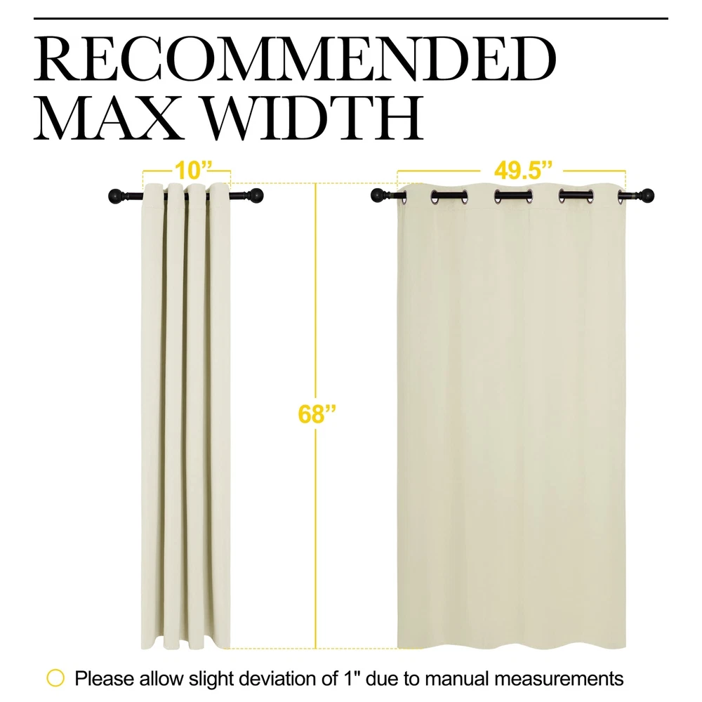 NICETOWN Room Darkening Curtain Panels for Cafe, Thermal Insulated Grommet Room Darkening Draperies/Drapes for Window (Beige, 2 Panels, W55 x L68 -inch) ELEGANT DESIGN: 2 panels per package. Each Blackout Curtain measures 55" wide x 68" long. The design of silver grommet (1.6-inch inner diameter) creates casual elegance for your house, which makes the curtains easy to install and slide. MULTI-FUNCTION: Super heavy and soft Blackout Curtain Panels are very upmarket. Besides, 85%-99% light blocking, thermal insulated, soundproof, Fade-resistant, energy-efficient. Thread trimmed and wrinkle-free, both sides are the same color. WISE BUDGET: Protect your furniture and floor exposed to the sun, while still helping you save money on heating and cooling your home. Privacy protection. The greatest is to bring you a good night's sleep, making you full of energy every day. WIDE COMPATIBILITY: Don't bother looking for valance to match, choosing different styles of blackout valance with the same color in the NICETOWN store. Such curtain sets provide a more permanent harmonious window dressing. EASY MAINTENANCE: Machine or hand washable. Mild detergent no bleaching. Low-temperature ironing. Measure your pole and window size before you choosing curtains. NICETOWN Blackout Curtains are so much more than just bits and pieces of fabric that are sewn together to prevent sunlight from entering your home, they go beyond that mundane function and provide additional benefits that do not meet the eye instantly. SHIPPING - We offer FREE shipping on all orders! - We ship within 3 business days of payment, usually sooner - We use a selection of shipping services such as UPS, FedEx, USPS etc - We only ship to the lower 48 states, no APO/FPO addresses or PO Boxes allowed International buyers – please note: Import duties, taxes, and charges aren't included in the item price or postage cost. These charges are the buyer's responsibility. - Please check with your country's customs office to determine what these additional costs will be prior to bidding or buying. - We have confidence in our products, but if you are not fully satisfied please contact us within 30 days of purchase and you will get full refund. * Order Cancellation Policy ** You can return a product for up to 30 days from the date you purchased it. 1. The seller reserves the right to cancel the special case only due to eBay cancellation fee. 2. The decision of seller is the final. 3. The seller will respond to the cancellation request within 2 business days. Please wait for the result of cancellation. 4. In case the cancellation is not completed by some reasons, the buyer can follow the options below to get the refund. 4.1 The buyer can reject the item when it arrives. 4.2 The buyer can send the item back to the seller within 30 days If the buyer receives item (USA Shipment ONLY). The seller will provide the FREE return label to the buyer when the buyer opens " Return Item" case on eBay by using the reason as "Change my mind" ONLY. 5. When buyer has placed the order. The order will be processed and completed by automatic warehouse system within 5 minutes. In case that buyer sends the cancellation request after 5 minutes of placing the order, the request will be rejected. **Sending direct message to cancel the order is not allowed for every case.* Return Policy For the return case - If buyer would like to return the items for refund or replacement, please CONTACT SELLER to receive the free return label from seller. The refund or replacement will be processed with the tracking number of return label which is provided by seller only. The other ways of return which are not approved by seller will not be processed for the refund or replacement. CUSTOMER SERVICE - We try our best to make sure every customer is completely satisfied. - If there's a problem, feel free to message us! - We're happy to help.