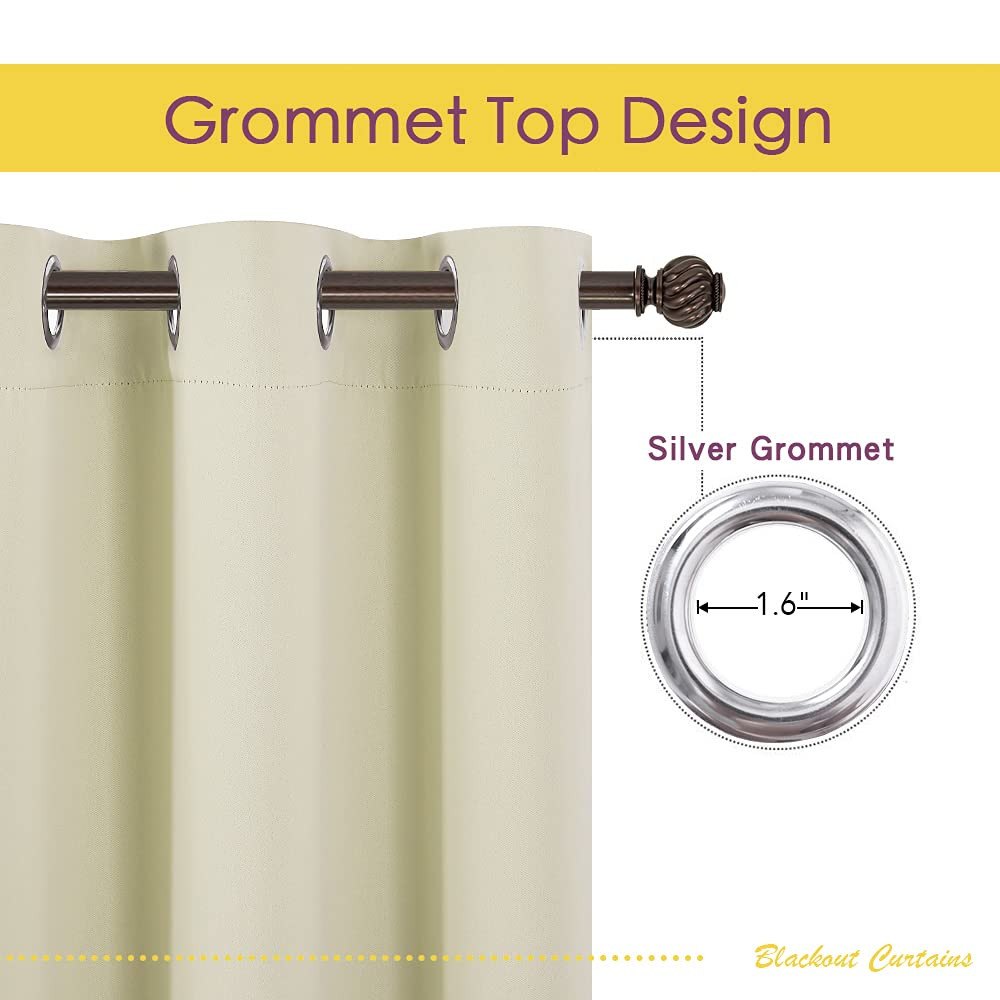 ELEGANT DESIGN: 2 panels per package. Each Blackout Curtain measures 70" wide x 54" long. The design of silver grommet (1.6-inch inner diameter) creates casual elegance for your house, which makes the curtains easy to install and slide. MULTI-FUNCTION: Super heavy and soft Blackout Curtain Panels are very upmarket. Besides, 85%-99% light blocking, thermal insulated, soundproof, Fade-resistant, energy-efficient. Thread trimmed and wrinkle-free, both sides are the same color. WISE CHOICE: Protect your furniture and floors from sun exposure, while enhancing the energy efficiency of your home. Enjoy added privacy with our curtains, designed to ensure a restful night's sleep that leaves you energized each day. WIDE COMPATIBILITY: Don't bother looking for valance to match, choosing different styles of blackout valance with the same color in the store. Such curtain sets provide a more permanent harmonious window dressing. EASY MAINTENANCE: Machine or hand washable. Mild detergent no bleaching. Low-temperature ironing. Measure your pole and window size before you choosing curtains.