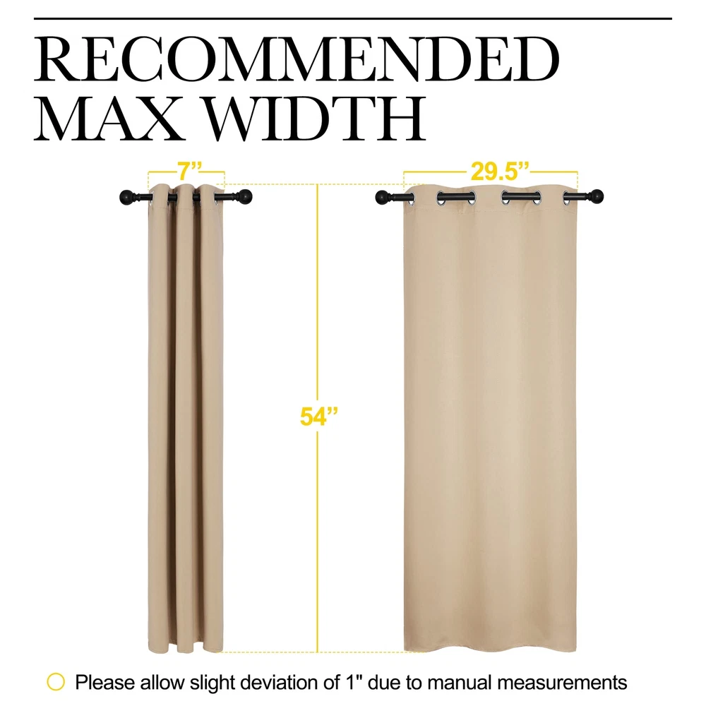 NICETOWN Room Darkening Draperies Window Curtain Panels, Thermal Insulated Grommet Room Darkening Curtains for Bedroom (Biscotti Beige, 2 Panels, W34 x L54 -inch) ELEGANT DESIGN: 2 panels per package. Each Blackout Curtain measures 34" wide x 54" long. The design of silver grommet (1.6-inch inner diameter) creates casual elegance for your house, which makes the curtains easy to install and slide. MULTI-FUNCTION: Super heavy and soft Blackout Curtain Panels are very upmarket. Besides, 85%-99% light blocking, thermal insulated, soundproof, Fade-resistant, energy-efficient. Thread trimmed and wrinkle-free, both sides are the same color. WISE BUDGET: Protect your furniture and floor exposed to the sun, while still helping you save money on heating and cooling your home. Privacy protection. The greatest is to bring you a good night's sleep, making you full of energy every day. WIDE COMPATIBILITY: Don't bother looking for valance to match, choosing different styles of blackout valance with the same color in the NICETOWN store. Such curtain sets provide a more permanent harmonious window dressing. EASY TO MAINTAIN: NICETOWN blackout curtains are made to last. Machine washable in cold water, tumble dry. Quick ironing or steam clean when needed. Visiting the NICETOWN store, find out your favorite curtains. NICETOWN Blackout Curtains are so much more than just bits and pieces of fabric that are sewn together to prevent sunlight from entering your home, they go beyond that mundane function and provide additional benefits that do not meet the eye instantly. Light Blocking Energy Savers. Having the heavy, multi-layered microfiber blackout window curtains or drapes can make a world of a difference in reducing the amount of light that comes in from outside, which has green-conscious consumers excited about investing them as energy-efficient window treatments. A home insulated and remains warmer in wintertime relieves the strain on home heating and reduces 25 percent energy budget at most. Sleep Soother n Noise Buffer. It's hard to get babies to take a rest during the day when the sun is streaming brightly through a bedroom window. Blackout curtains encourage the possible sleep and most comfortable setting for day sleepers and the ones who have trouble falling asleep, by automatically darkening and lowering noise levels. Absolute Privacy n Relax. Not only that but also make your resting zone truly blissful. They would be perfect for any home theater and supply you with the enjoyment of watching TV in real darkness. If you are looking for great and cost-effective ways of re-inventing the look of your home, NICETOWN readymade curtains would be the game changer in your shopping cart. They are crafted for the topmost and luxury, coming with the strong grommet ring top for easy installation and smooth sliding over a rod. Each curtain panel is carefully ironed and ready to serve as your window dressing. What color do you like? SHIPPING Domestic Buyers - We ship within 3 business days of payment, usually sooner - We offer FREE shipping on all orders! - We only ship to the lower 48 states, no APO/FPO addresses or PO Boxes allowed - We have confidence in our products, but if you are not fully satisfied please contact us within 30 days of purchase and you will get full refund. International buyers – please note: Import duties, taxes, and charges aren't included in the item price or postage cost. These charges are the buyer's responsibility. - Please check with your country's customs office to determine what these additional costs will be prior to bidding or buying. * Order Cancellation Policy ** You can return a product for up to 30 days from the date you purchased it. 1. The seller reserves the right to cancel the special case only due to eBay cancellation fee. 2. The decision of seller is the final. 3. The seller will respond to the cancellation request within 2 business days. Please wait for the result of cancellation. 4. In case the cancellation is not completed by some reasons, the buyer can follow the options below to get the refund. 4.1 The buyer can reject the item when it arrives. 4.2 The buyer can send the item back to the seller within 30 days If the buyer receives item (USA Shipment ONLY). The seller will provide the FREE return label to the buyer when the buyer opens " Return Item" case on eBay by using the reason as "Change my mind" ONLY. 5. When buyer has placed the order. The order will be processed and completed by automatic warehouse system within 5 minutes. In case that buyer sends the cancellation request after 5 minutes of placing the order, the request will be rejected. **Sending direct message to cancel the order is not allowed for every case.* Return Policy For the return case - If buyer would like to return the items for refund or replacement, please CONTACT SELLER to receive the free return label from seller. The refund or replacement will be processed with the tracking number of return label which is provided by seller only. The other ways of return which are not approved by seller will not be processed for the refund or replacement.