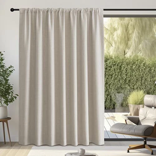 Return Policy Fast Delivery Trusted seller Room Darkening Patio Curtains for Sliding Door, Hook Belt/Rod Pocket/Back Tab Thermal Window Treatment Room Divider Curtains for Bedroom/Living Room, Angora, W100 x L84, 1 Panel Product Description Faux Linen Ready Made: Sold by 1 panel of extra wide upmarket faux linen room darkening curtain, measuring 100" Wide, with 3 hanging options(2.2" diam) to suit most of the standard or decorative curtain rods. Light Blocking: The room darkening curtains with luxury faux linen textured will block most of the sunlight, heat, cold, and noise out with 100% privacy for your good sleep or rest even during the day. Hanging Options: You can hang your new drapes using the back tab, or rod pocket, or use small hooks on the hook belt to let them gently hang downward, then you will get elegant pinch pleated curtains. Wide Compatibility: You will find this functional extra wide linen curtain is perfect for your sliding glass door, French door, patio door, and room dividers of your bedroom, living room, and guest room. Easy Care: upmarket faux linen texture is wrinkle-free and has a good vertical sense for easy care. It's OK if you need tumble dry, quick ironing, steam clean, or machine washable in cold water. Shipping Returns Payment Shipping Shipping is FREE to all addresses other than APO/PO boxes in the lower 48 states. All our stock ships from US-based warehouses. Shipped via USPS or UPS (depending on location and package weight) Unless stated otherwise, all orders will ship within 24-72 hours of your payment being processed. Check our feedback to see the great reviews of FAST shipping we offer. Returns Seller does not accept returns Payment We currently accept payment via eBay managed payments only. Once payment is cleared, we will dispatch your shipment within 1-3 business days. Please refer to the "Shipping" tab for more information regarding shipping speed to your destination.