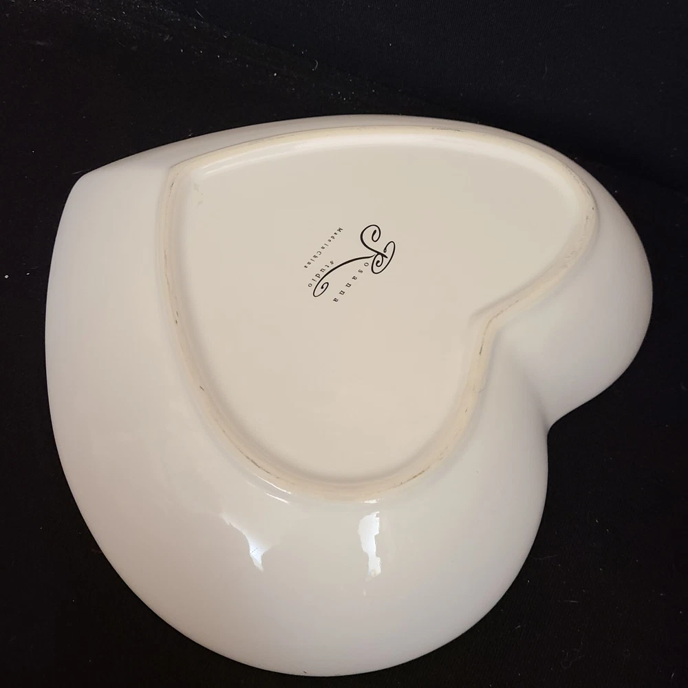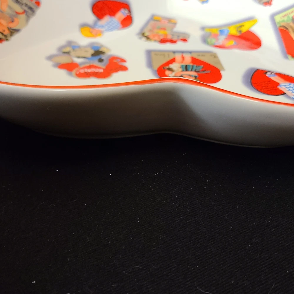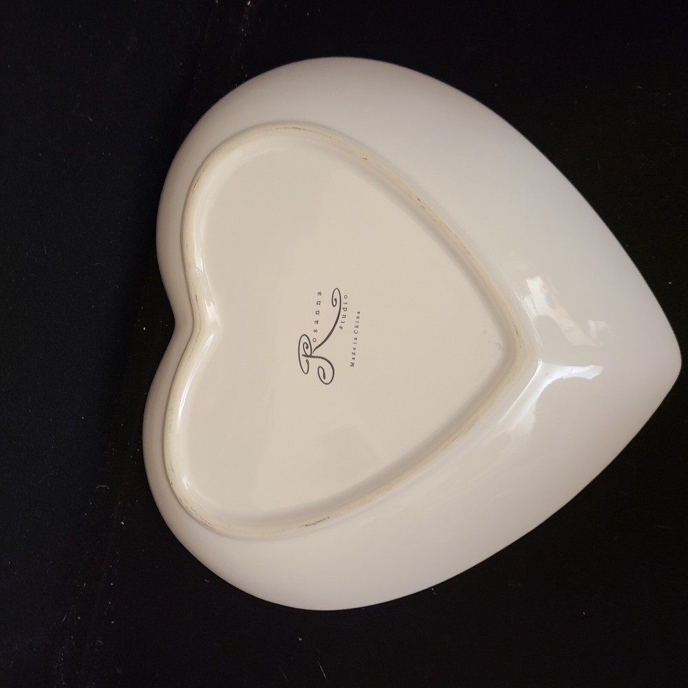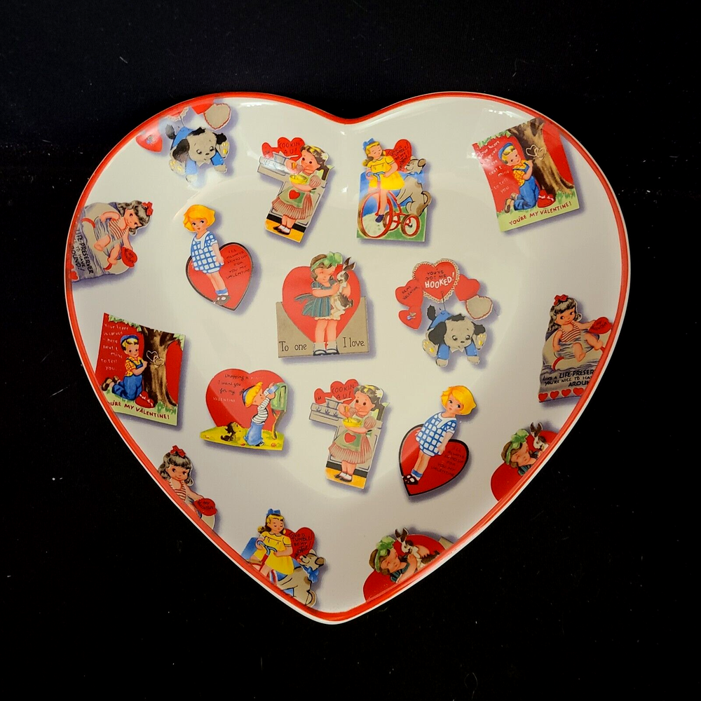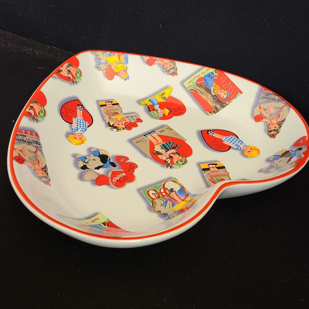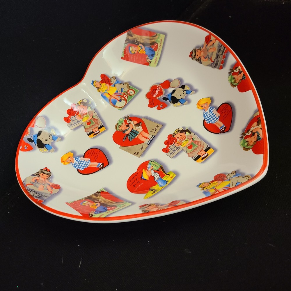Rosanna Studio Valentines Day Retro Card Ceramic Heart Shaped Plate Candy Dish Measures 9.75" tall, 10" wide and 1.75" deep. Packaged carefully and shipped quickly from a smoke-free environment....