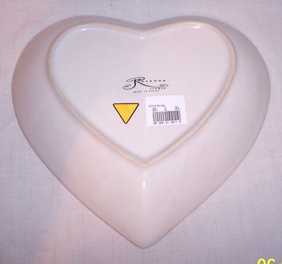 This charming heart-shaped plate from Rosanna Studio is the perfect addition to your Valentine's Day decor. The retro-inspired design features a cute heart pattern in multicolor and is printed on high-quality ceramic and porcelain materials. Measuring 9.75 inches in length and 10 inches in width, this medium-sized plate is perfect for serving candy or other small treats. Whether you're looking for a gift for a loved one or simply want to add some charm to your own home, this Rosanna Studio Valentine's Day plate is sure to impress. With its unique design and high-quality construction, it's an original piece that you'll cherish for years to come.