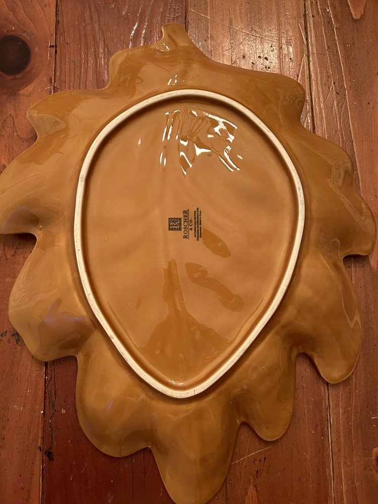 Roscher Large Bowl / Chip & Dip serving bowl Golden Amber brown Approximately 18 inches from tip to tip Approximately 14.5 wide Weighs 5 lbs No issues , chips or cracks Excellent Condition Please refer to the photos as they are a part of the description If you’d like additional photos please let me know. Please with any item research before you purchase. All offers welcomed, considered and greatly appreciated. Thank you for looking Please take a moment and check out my other items in my eBay store, Thanks again
