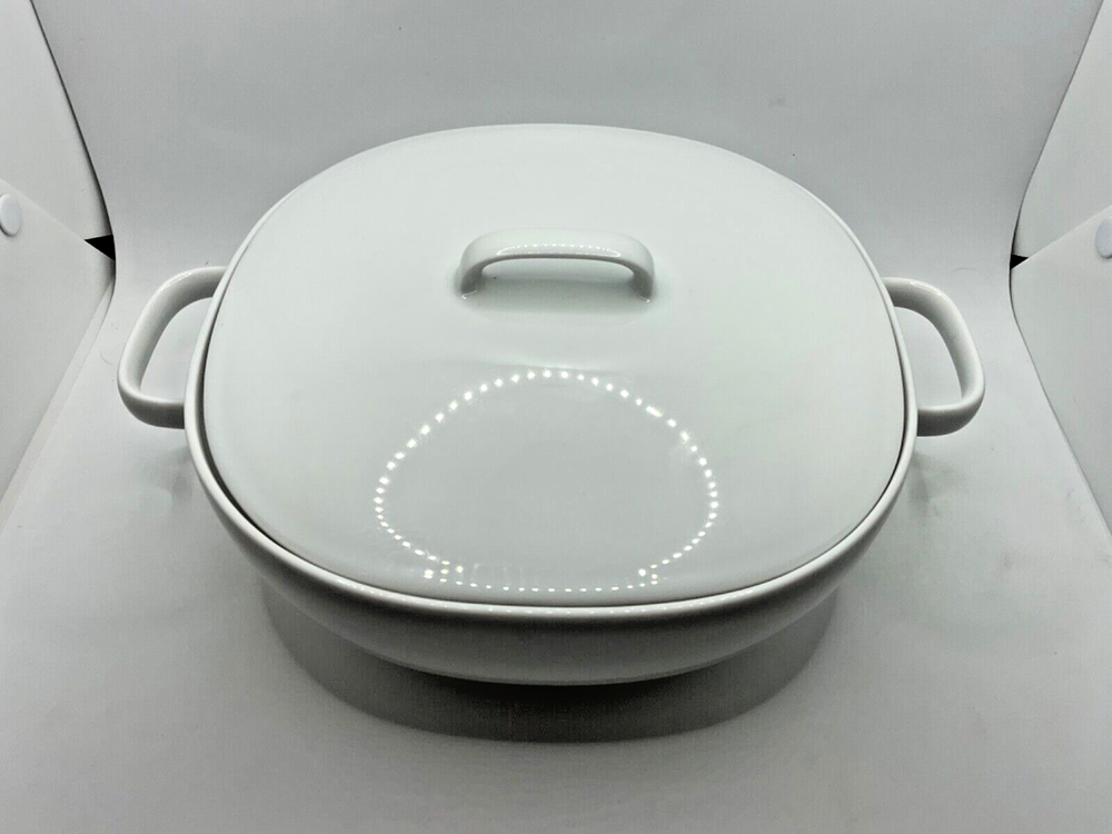 White porcelain Rosenthal lidded vegetable dish, which was never used. It was designed by Jasper Morrison. It measures 10 3/4 inches handle to handle x 4 1/2 inches tall. Please feel free to ask any questions prior to purchase. All sales final.