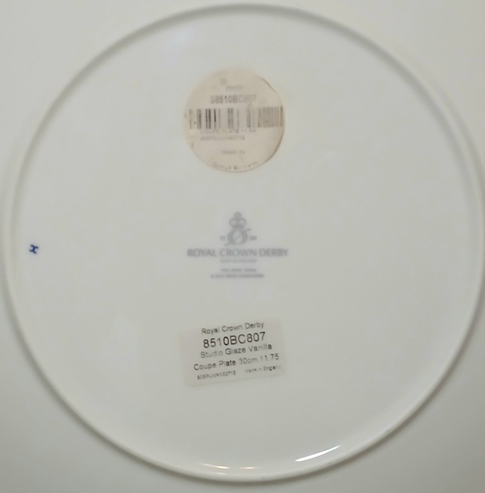 Available is this (1) Royal Crown Derby Studio Glaze Vanilla 11 3/4" (30cm) Coupe Plate. This plate is in New Unused Display Condition without box. This is an absolutely gorgeous plate in beautiful condition!