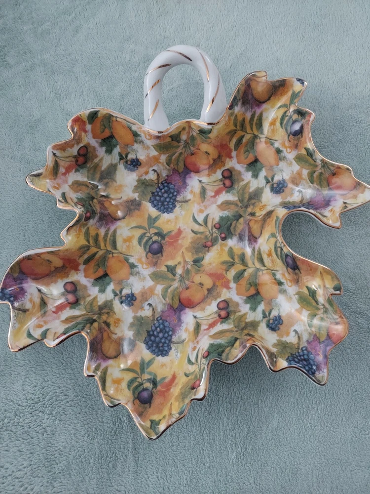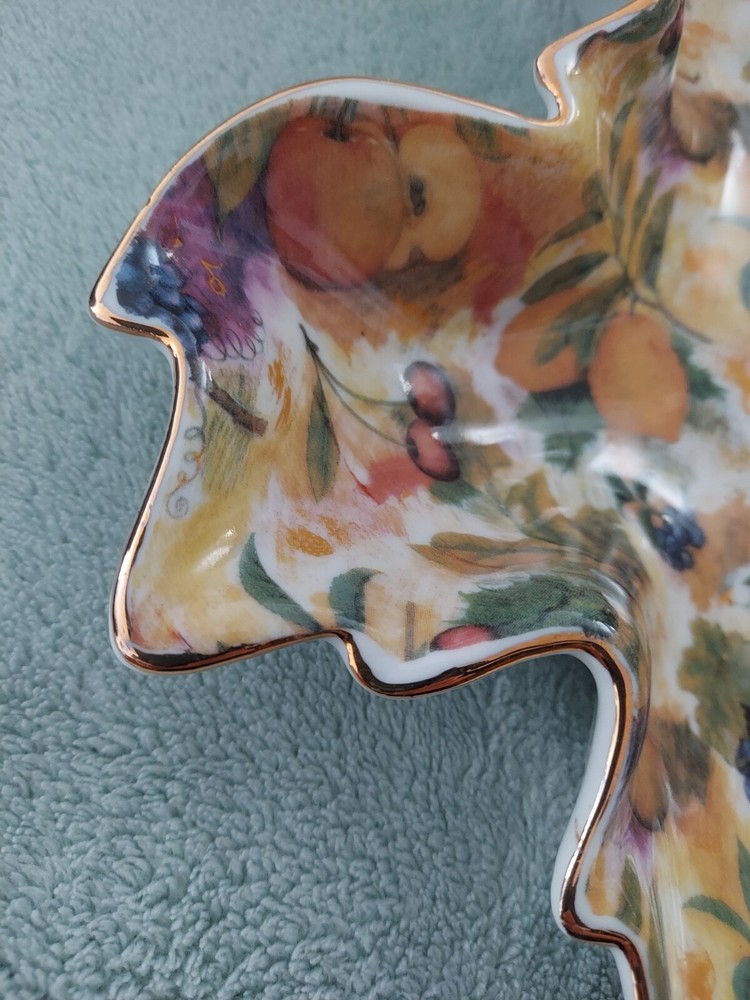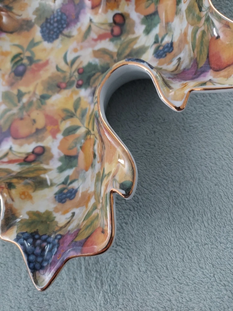 Beautiful multicolored Collectible Royal Danube Fruit gold trim Candy DIsh this unusually fruit shaped glass dish is 11 " Wide 2 " deep. Pretty dish Excellent condition. This item will be double boxed for protection. Feel free to ask questions. Thanks for shopping.