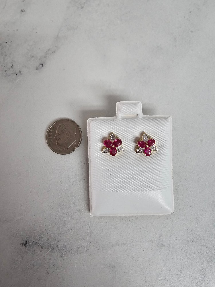 ♥ Product Summary ♥ Main Stone: Ruby & Diamond Stone Cut: Oval & Round Material: 14k Yellow Gold Dimensions: 9MM Backing: Butterfly Diamonds & Gemstones are Natural. Not enhanced, simulated or lab created. FREE SHIPPING IN THE U.S. We ship all items within 1-3 business days after payment. Deliver anywhere in US via USPS Ground Advantage or FedEx Express Saver. Next Day Air available for additional fee. International Delivery is available for an additional fee. RETURNS/EXCHANGES We want you to be completely satisfied with your purchase. If for any reason you are not satisfied we will gladly accept returns and exchanges within 30 days after delivery.