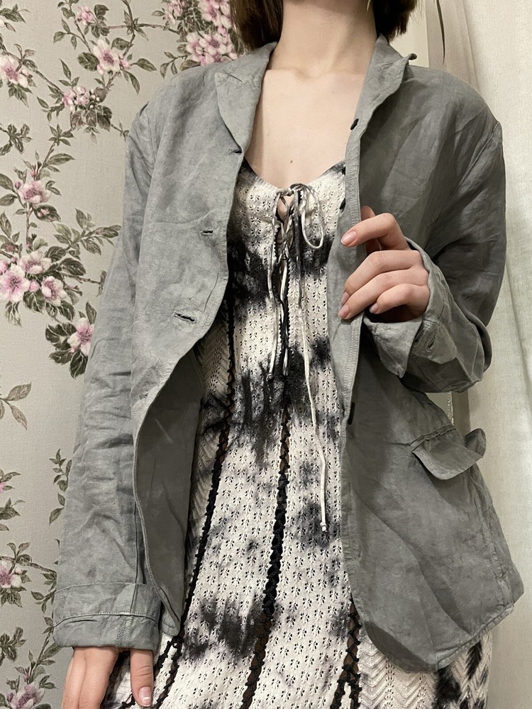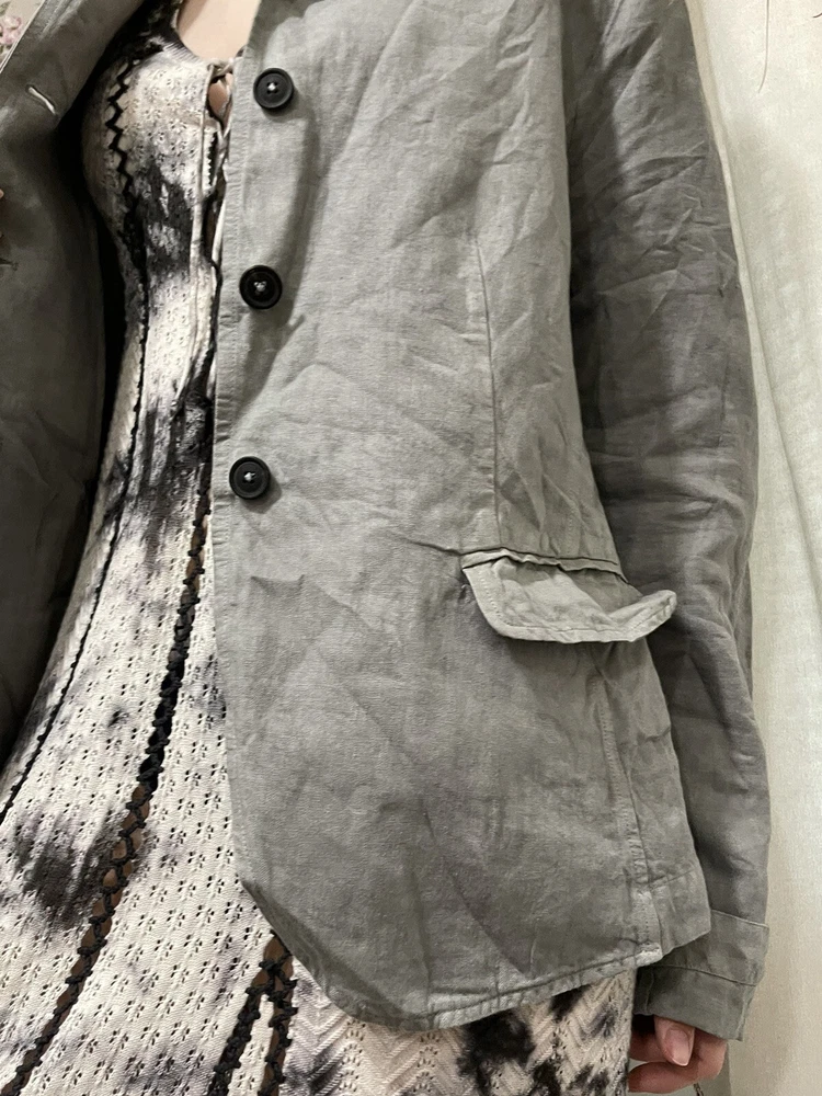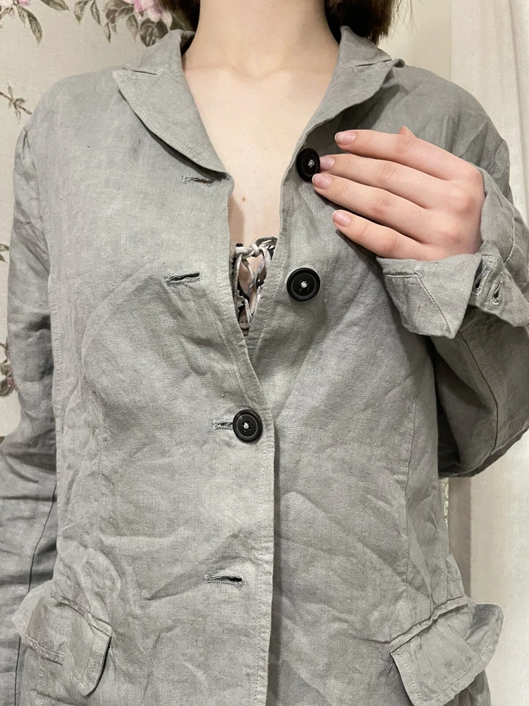 The tag cut off but to the touch 100% Linen Condition pre-owned, excellent Size:the size tag cut off, but good fits on L Measurements: Armpit to armpit :52 cm Front length : 66-67cm Back length : 60 cm Waist: 49 cm Sleeves: 66 cm Shoulders: 42 cm Write me and I’ll send you additional photos or measurements❤️