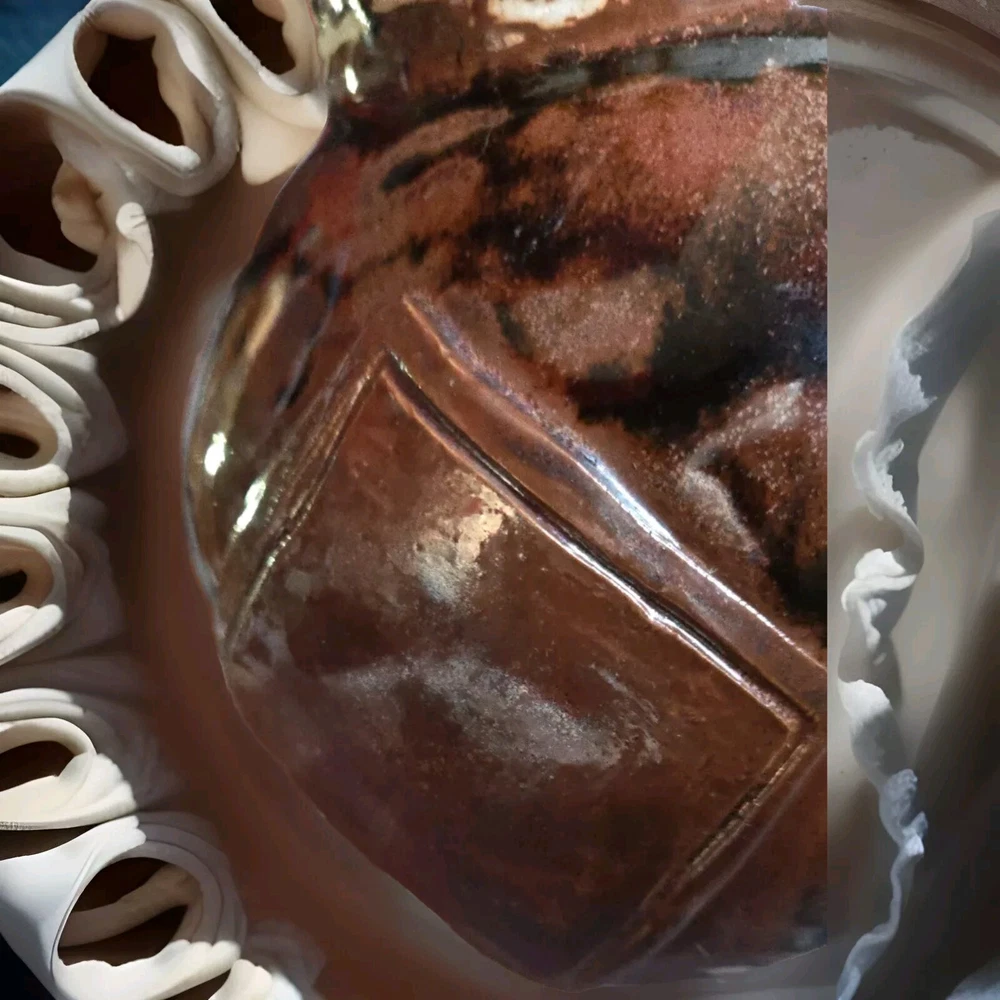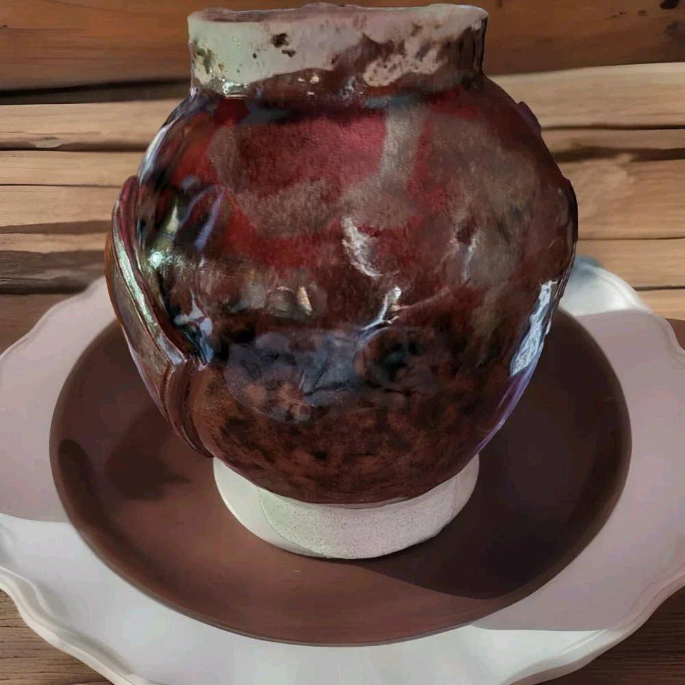 This handmade pottery planter is absolutely stunning! The rustic raku glaze gives it organic, earthy charm while the unique shape and abstract patterns make it a one-of-a-kind statement piece. Perfect for succulents or simply as decor, it works indoors or out with its durable, fire-resistant ceramic. Elevates any space with artisanal warmth!