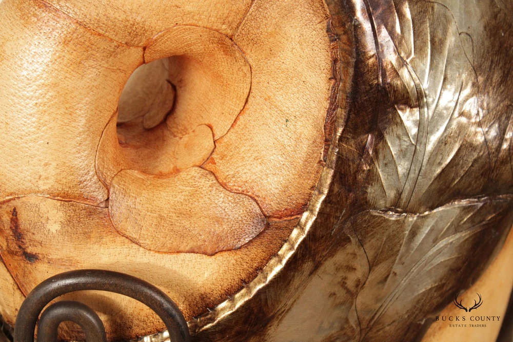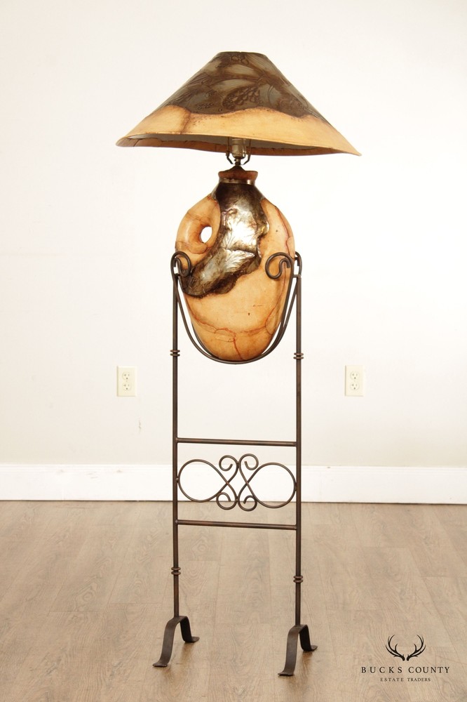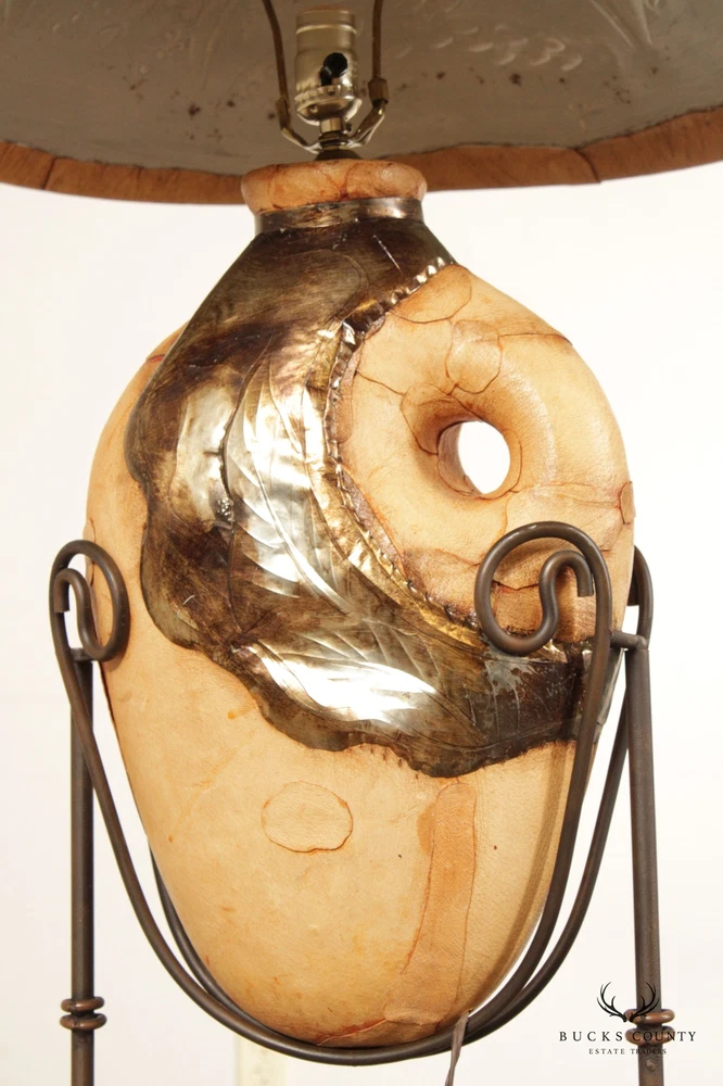 Shipping is not included in the price, please contact us for details before purchasing Store Item #: 49001 Rustic Style Studio Crafted Sculptural Floor Lamp AGE/COUNTRY OF ORIGIN : 2000 - 2009, Unknown DETAILS/DESCRIPTION : High Quality Hide-Wrapped Ceramic Vessel Floor Lamp, With Decorative Steel Elements and Wrought Iron Base STYLE: Rustic / Studio CONDITION REPORT : Clean vintage condition. MEASUREMENTS : H: 58.00 x W: 24.00 x D: 24.00 All of our items are either pre-owned vintage or antique and may show usual signs of wear and use. No international buyers, please. Items must be paid in full within 5 days of the auction end. Please note that we will hold items up to 2 months with no penalty but any longer (without prior approval) and we will have to charge storage fees of 10% of the order total, per month. Also please note that a 15% restocking fee may be assessed on returns for reasons OTHER THAN “Item not as described” per the Return Policy. All other returns, including deciding not to purchase the item, may also be assessed a 15% restocking fee. Shipping is not included in the price, please contact us for details before purchasing Although we strive to get your item to you as quickly as possible, standard shipping time for freight items is 3-6 weeks, sometimes longer (and other times as quick as 1-2 days). WE DO NOT OFFER GREYHOUND SHIPPING PLEASE REVIEW THE FOLLOWING CHECKOUT PROCEDURE IF YOU REQUIRE SHIPPING If you are picking the items up from our showroom or you are hiring a shipping carrier directly, then you can checkout without performing the following to request the shipping cost. If you will be utilizing Bucks County Estate Traders to ship your purchase to you, then you must perform the following steps to ensure your order is processed correctly: Proceed from your eBay cart to the Checkout page. This is the page where it is prompting you for your payment information.? Do not enter your payment information or click the "Pay" or "Pay with PayPal" buttons. Instead, scroll to the "Review item and Shipping" section. Locate and click the Request total or request order total link. From the Order Details page, provide any additional details that might affect your delivery, such as driveway access, street parking only, 2nd floor or basement installation, elevator scheduling required, etc. Click the Commit to buy & submit request . Once we receive your request, we will update the order with our best shipping price (we strive to respond the same day). You will then receive a new invoice securely within eBay, for which you can then provide payment. *** Please be assured that although eBay states that you are committing to buy, we understand that you cannot truly commit to buying without knowing your shipping costs. If you are unhappy with the shipping costs for any reason, we will cancel the sale and refund any fees that may have been collected. Local pickup is available Monday-Saturday, 8:30 am-4:00 pm in Hatfield, PA 19440. Item(s) must be paid in advance as we will not release until confirmation of payment. Please call us or email us upon completion of the sale to confirm your shipping arrangements. We will not release the item for shipment until you have confirmed a shipping method. OFFICE CODE: 49001-BCET