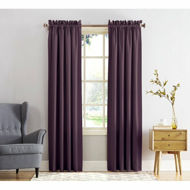 WE DO NOT SHIP TO P.O. BOXES. PLEASE PROVIDE A PHYSICAL MAILING ADDRESS. Item will be shipped free by USPS Priority Mail/UPS within 48 Lower States (NO SHIPPING for Alaska, Hawaii or Puerto Rico) SET OF 2 - Sun Zero Kylee Curtain Panel in plum brings style and energy efficiency to any home. The woven solid design with an easy to hang rod pocket offers a classic style that fits in with any room décor while reducing light and noise for better sleep; help keep your home cooler in the summer and warmer in the winter. Curtain panel is made of materials that reduce light, and considerably darken the room. Some light will show through. These materials do not allow a view through and provide complete privacy. The darker the color the better the light reducing capabilities. Hang on a rod up to 1.5 inch in diameter. Polyester. Washable. Imported. Measuring 54" width by 84" length. Machine wash cold on gentle cycle. Use non-chlorine bleach when needed. Tumble dry on low heat, using a cool iron as needed. Room Darkening technology blocks out some unwanted light while enhancing privacy Energy efficient design reduces energy lost through your windows by up to 25% Thermal properties help keep summer heat and winter chill out of your home Noise reduction up to 25% helps you get a sounder, more uninterrupted sleep Built-in rod pocket fits curtain rods up to 1.5" in diameter Curtain rod not included.