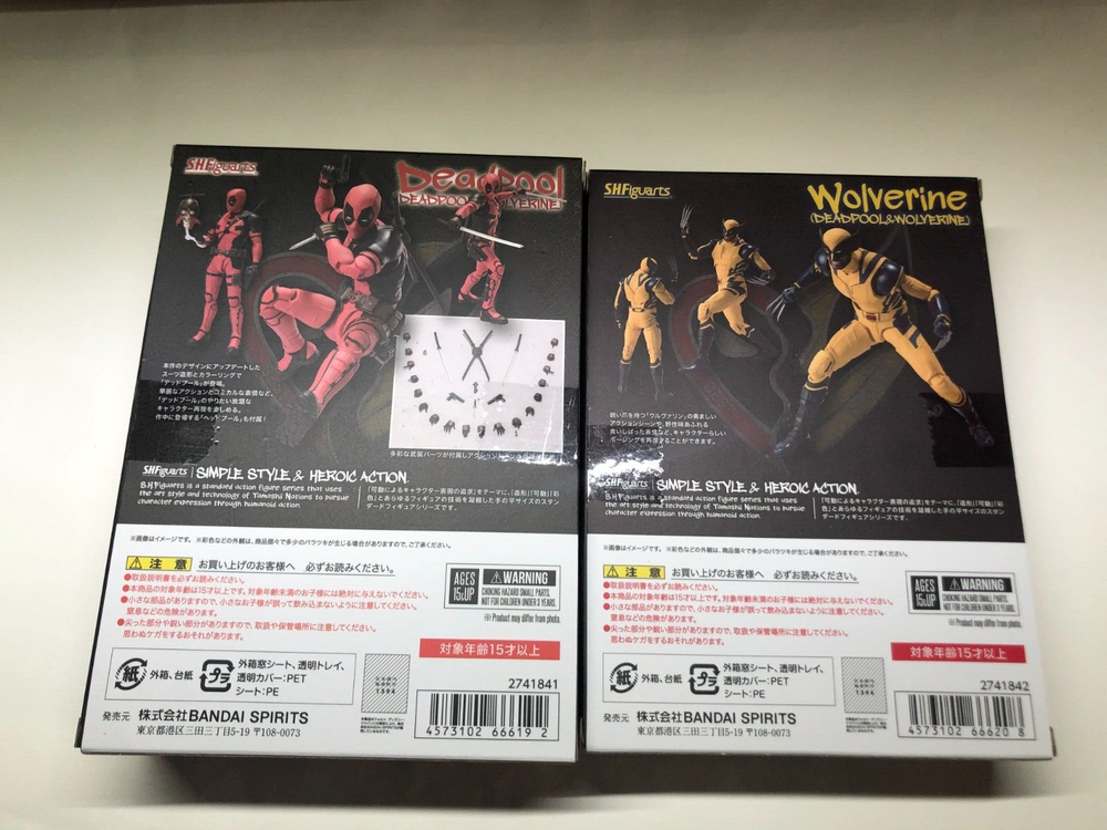 S.H.Figuarts Deadpool & Wolverine Movie set Bandai Action Figure SHF Description Condition :NEW Bland : Bandai Deadpool [Size] Height: Approx. 155mm [Material] ABS, PVC [Set contents] Figure body 9 types of interchangeable wrist parts (left and right) 3 types of interchangeable eye parts (left and right) 2 swords Sheath parts 2 guns 2 holsters Knife Knife case Head pool Support parts for head pool Wolverine [Size] Height: Approx. 155mm [Material] ABS, PVC [Set contents] Figure body 4 types of interchangeable wrist parts (left and right) Interchangeable head parts Shipping FedEx/Japan Post with Tracking number Shipping Worldwide!! About Us my pages products is purchased in japan our products are 100% authentic International Buyers - Please Note: Import duties, taxes, and charges are not included in the item price or shipping cost. These charges are the buyer's responsibility. Please check with your country's customs office to determine what these additional costs will be prior to bidding or buying. Thank you for looking at my page! Enjoy shopping!