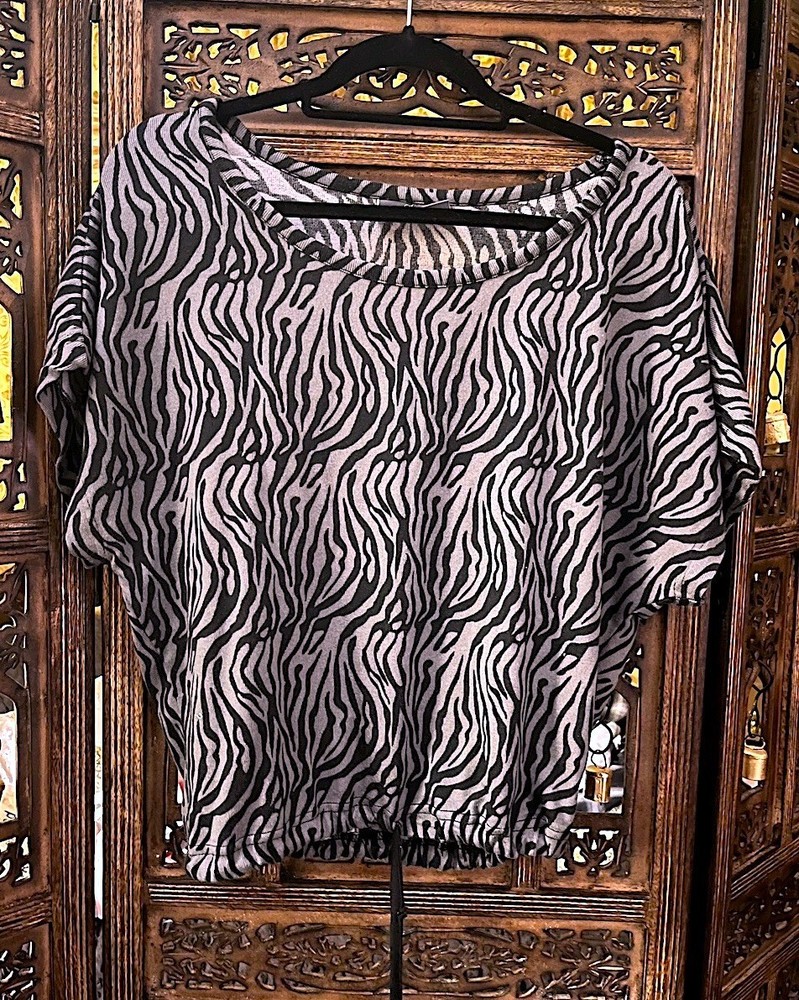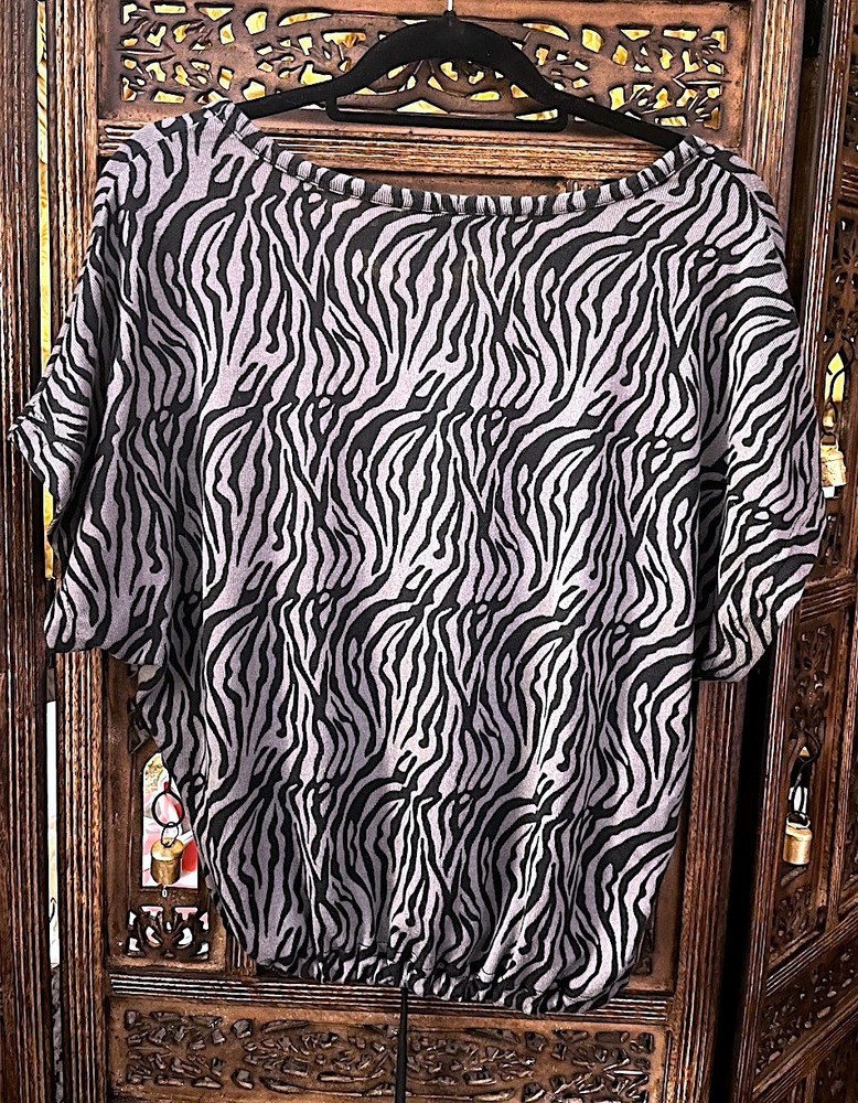 SIGNATURE MADISON PARK BLACK AND GRAY ZEBRA PRINT SHORT SLEEVE SCOOP NECK T SHIRT SMALL...