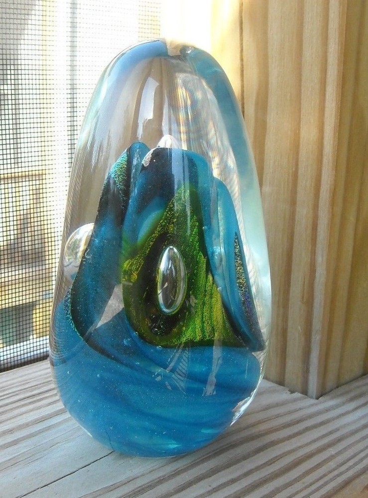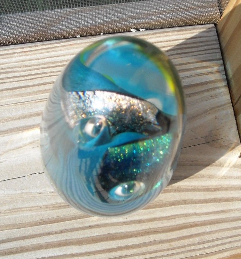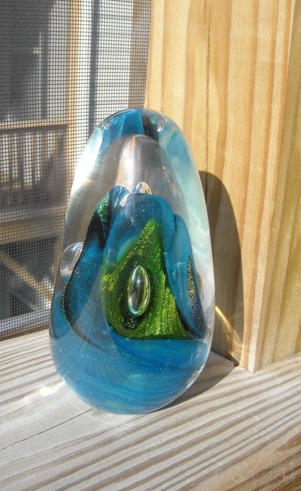 Absolutely divine and authentic paperweight! Stunning colors and mesmerizing dimension! I love this piece, and I as equally thrilled with my entire purchase experience! The seller was fantastic, shipped quickly and packaged it very securely! The piece is incredible quality, heavy art glass! It arrived safely and is flawless, precisely as described! Highly recommend this seller and would shop from them again! Thank you so much!