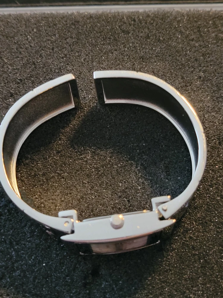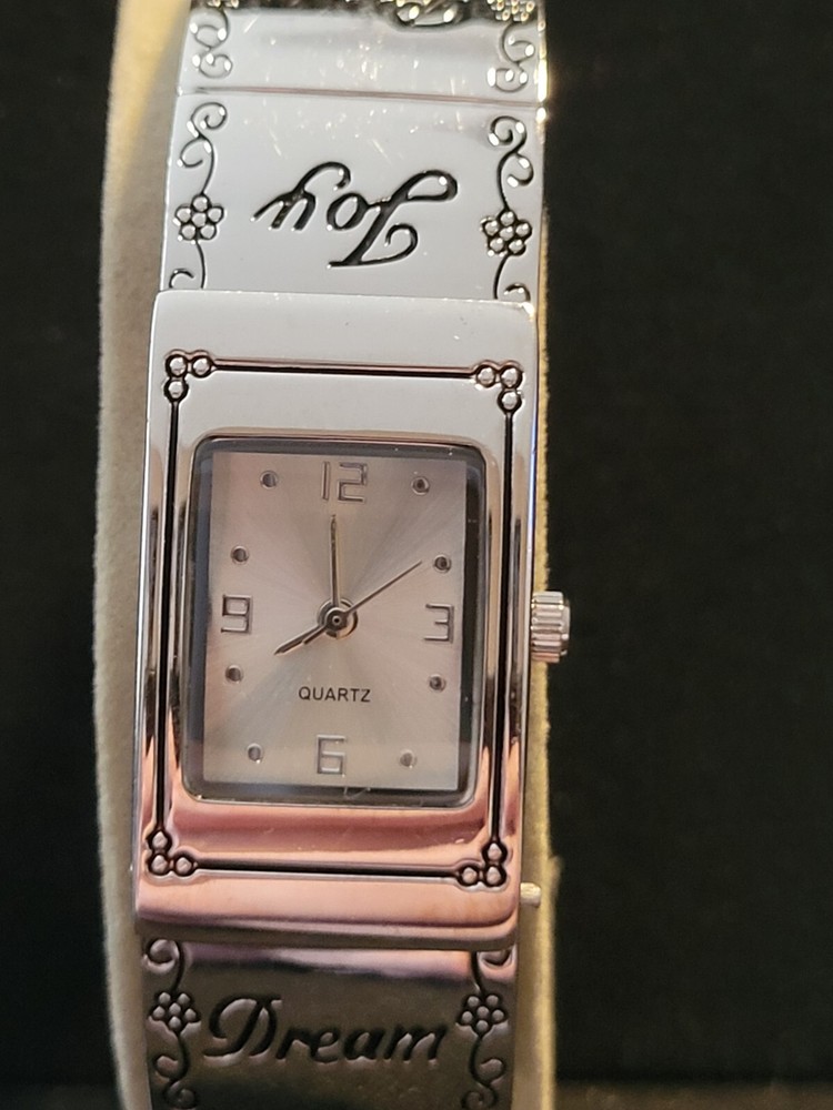 This silver tone ladies wristwatch is a classic addition to any jewelry collection. The watch features a square shaped stainless steel case with a silver bezel etched on the front. The ivory dial is analog and displays the time in 12-hour format. The watch is water resistant and has a quartz movement. It was manufactured between 2010-Now and comes without papers or original packaging. The watch is studio brand and has a stainless steel and metal band. With its silver color and classic style, this wristwatch is perfect for any occasion.