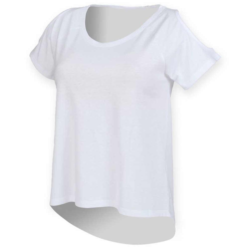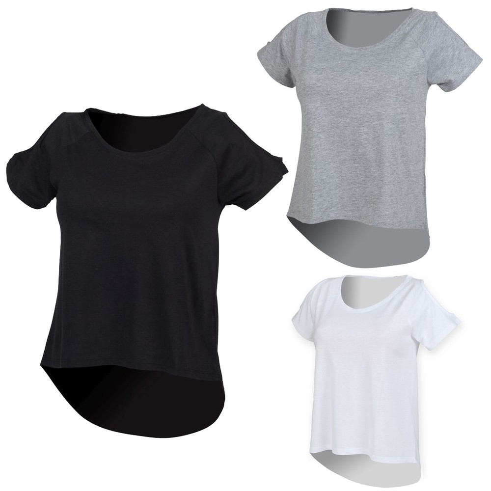 THANKS FOR LOOKING AT OUR WOMEN'S CLOTHING RANGE Skinnifit Ladies Drop Tail T-shirt Code:SK233 Product Details: Material: 60% cotton/40% polyester.* *Heather 85% cotton/15% viscose. Single jersey. Short sleeve with cut out shoulders. Curved drop hem. Twin needle stitching at neck, sleeves and hem. Weight: 140 gsm Size: XS S M L XL XXL Ladies size: 8 10 12 14 16 18 Chest (to fit): 30/32 32/34 34/36 36/38 38/40 40/42 Please note g arment sizes are approximate and for guidance only
