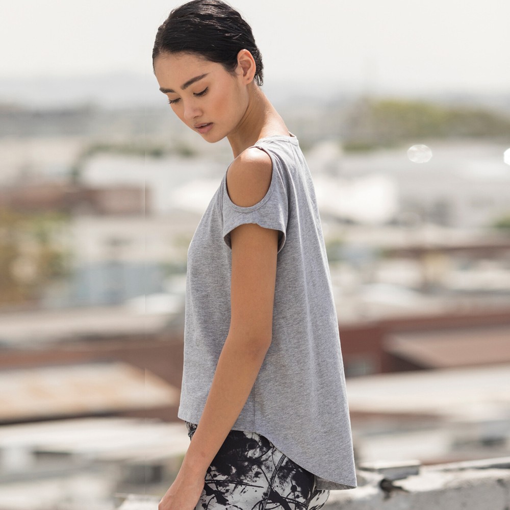 This Skinnifit drop-hem tee is super comfy and stylish! The soft cotton-poly blend feels great on the skin, and the cut-out shoulders add a trendy touch. The dipped hem gives it a flattering fit that looks amazing with jeans or leggings. Lightweight yet durable stitching holds up well after washes. Runs true to size—super flattering for all body types. Love how versatile it is for casual outings or layering! Definitely a wardrobe staple.