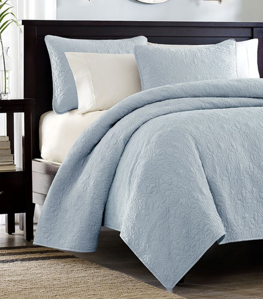 Blue Matelasse Quilt Set - FULL/QUEEN Product Description: A classic style that easily pairs with existing decor, this beautifully crafted quilt set in a soft powder blue will be the center point of your room. Matelassé is a French term for a "quilted ornamented fabric" . Set includes Quilted Quilt + 2 Shams (same pattern as quilt). What's in the Set: Quilt + 2 Shams (see below for sizes) Style: Country Cottage Color: Powder Blue Front: 100% Super Soft Poly Reverse: 100% Brushed Microfiber Fill material: 100% Cotton Care instructions: Machine washable Condition: Brand New Dimensions: Quilt: Full/Queen - 90 x 90 inches Standard Shams (two) - 20 x 26 inches Also available in OTHER SIZES & COLORS . Please Click Here ~~~~~~~~~~~~~~~~~~~~~~~~~~~~ ~~~~~~~~~~~~~~~~~~~~~~~~~~~~ Returns or Exchanges Please see the Shipping Tab above Shipping Locations: Shipping cost stated is to the 48 contiguous United States. We will gladly ship to Canada, Hawaii, Alaska, Puerto Rico and APO/FPO (Military) addresses, but there may be additional freight charges. Buyers living in these territories must email your zip code BEFORE bidding for a freight quote. Otherwise, we will assume your bid is an acceptance that there will be an additional shipping cost.