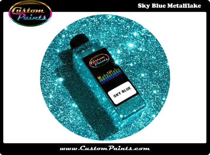 This item is for 6oz of SKY BLUE Metal Flake Medium size .008 Hex Metal Flake Application: Apply Custom Paints Inc Metal Flake over any base color to produce a real custom effect. We recommend adding the Metal Flake to our Flake Carrier but you can add them to a Automotive solvent or water based 1k or 2k Clear coat, Clear base coats (Candies etc) and Clear Varnish. Depending on how heavy you want the flake effect, will depend on how much you will need. Always spray test panels before spraying you product or project to see the effect you desire. Start by prepping your project as you would any other paint job. (Sand, Prime, etc.) Apply 2-3 coats of Base coat. Add the Metal Flake to a Clear base coat or Clear coat and stir well. Apply the Metal Flake until you get the effect you desire. Apply our 2k Show Clear until the Metal Flake is fully covered and you have full Gloss. Spray Gun Size for Metal Flake: (SMF) Small Flake is our fine cut flake at .004 x .004 hex . SMF flake size can be sprayed through most large size tip airbrushes, as well as HVLP full and detail sized spray gun equipment with a 1.0 nozzle set-up or larger. SMF lays down much flatter then MMF, LMF and XMF so it's easier to finish with clear. (MMF) Medium Flake is our medium cut flake at .008 x .008 hex . MMF flake size has a sparkling brilliance that is easy to use.MMF can be sprayed out of HVLP and conventional spray equipment with a minimum of 1.5 nozzle set-up or larger. (LMF) Large Flake is our large cut flake at .015 x .015 hex . LMF flake size has double the amount of sparkling brilliance of the LMF and has been used in the custom market for many years. LMF can be sprayed out of HVLP and conventional spray equipment with a minimum of 1.8 nozzle set-up or larger. METAL FLAKE Custom Paints Inc Metal Flakes are the HIGHEST grade you can buy, there are ultra thin, easy to smooth out and have outstanding sparkle. Our Metal Flakes are solvent proof and wont fade in sunlight as they have a high uv coating on them. we have had 1000s of customers use our flakes and continue using us all the time. Apply our Metal Flakes over any base color to produce a real custom effect. The Metal Flake can be added to solvent or water based Products, Clear Coats, base coats and Varnish. Custom Paints Inc offers 3 types of Metal Flake: Metal Flake, Prism Flake and Holographic Flake. Metal Flake is available in Small (004 Hex), Medium (008 Hex), Large (015 Hex) The unique Metal Flake color range: SILVER METAL FLAKE GUNMETAL METAL FLAKE BLACK METAL FLAKE GOLD METAL FLAKE DARK GOLD METAL FLAKE BRONZE METAL FLAKE COPPER METAL FLAKE ORANGE METAL FLAKE WINE RED METAL FLAKE FLAME RED METAL FLAKE PINK METAL FLAKE FUCHSIA METAL FLAKE PURPLE METAL FLAKE CLEAR METAL FLAKE SKY BLUE METAL FLAKE BLUE METAL FLAKE DEEP BLUE METAL FLAKE GREEN METAL FLAKE EMERALD METAL FLAKE BLURPLE METAL FLAKE The Prism Metal Flake comes in 1 size (008 Hex). The Prism Metal Flake Color Range: GREEN PRISM METAL FLAKE RED PRISM METAL FLAKE GOLD PRISM METAL FLAKE BLUE PRISM METAL FLAKE RAINBOW PRISM METAL FLAKE The Holographic Metal Flakes are available in Medium (008 Hex) and Large (015 Hex). The Holographic Metal Flake Color Range: SILVER HOLOGRAPHIC METAL FLAKE GOLD HOLOGRAPHIC METAL FLAKE BLUE HOLOGRAPHIC METAL FLAKE RED HOLOGRAPHIC METAL FLAKE ORANGE HOLOGRAPHIC METAL FLAKE PINK HOLOGRAPHIC METAL FLAKE GREEN HOLOGRAPHIC METAL FLAKE PURPLE HOLOGRAPHIC METAL FLAKE BLACK HOLOGRAPHIC METAL FLAKE SAPPHIRE HOLOGRAPHIC METAL FLAKE FUCHSIA HOLOGRAPHIC METAL FLAKE About Us Custom Paints Inc has now opened in Florida and is part of the European company Custom Paints Ltd located in the United Kingdom. Custom Paints Ltd is Europe's leading custom paint manufacturer who have been developing and supplying new, innovative special effect paints worldwide for over 15 years. Custom Paints Ltd ensures that all products manufactured exceed market expectations and are made using only the highest quality materials available. Custom Paints Ltd products are not limited to only the automotive sector; our coatings also have many other applications including architectural and industrial. These coatings can be applied to almost any surface that can be painted including plastics, glass, canvas, metals, wood and much more. Custom Paints Ltd is divided into 3 Brands: Kustom Canz, Specialist Paints and Inspire "Airbrush Paints". Metal Flake Aerosol Cans (Also Available in our eBay store) Our award winning Metal Flake is available in a Aerosol can. Our Aerosol cans give high output with excellent atomization and high transfer efficiency with no pressure drop during application. Using our aerosol cans saves you time & labor with no paint mixing or Spray gun cleaning. To get the best result from our Metal Flake aerosol cans we recommend using our 2K CLEAR-COAT CANZ. 2K CLEAR-COAT CANZ is the best 2k aerosol on the market!! Delivery information Most orders are shipped within 24 to 48 hours of receipt of payment. Orders received on weekends & holidays may require additional shipping time. We ship our orders with UPS MAIL, UPS GROUND or USPS. If you haven’t received your order within 14 days please contact us. WARRANTY Be aware of some cheap Metal Flake, Pearls and Paints on eBay as many won't be covered by any warranty, Custom Paints Ltd ensures that all products manufactured exceed market expectations and are made using only the highest quality materials available. Custom Paints Inc are able to give you a quality product with full backup and guidance on applying our products. Many of our Paint colours are available in water base. Please call us if you have any questions on our water based products. Returns Policy: Custom Paints Inc will accept returned items but items must be returned with in 14 days unused and saleable condition. All items must be returned with out the bottle or tin being opened. Please contact us before returning any items. Thank you. USA Office & Showroom Address: Custom Paints Inc 9632 