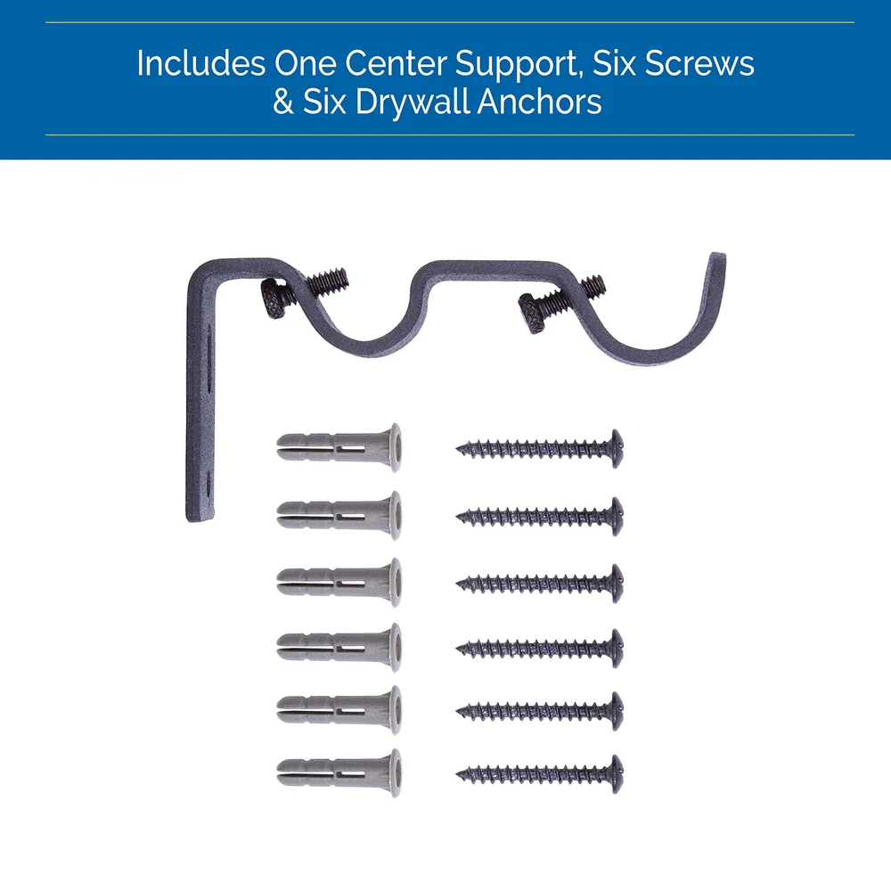 The Bronn Industrial 3/4" Blackout Double Curtain Rod is designed to wrap around your window frame to save energy, block light, and reduce noise. The textured matte black finished industrial styled telescoping pipework steel rod is adjustable from 36-66" to fit a variety of window sizes and projects 3.75" from the wall. Use on larger windows in larger rooms, like your bedroom, dining room, or living room to hang light, medium, or heavyweight curtains. The textured finish make this curtain rod ideal for hanging curtains with grommets or with clip rings. The double rod adds a layered look to your curtains, giving you more control over how much light to let into your room throughout the day and providing more insulation during colder months. To layer, place heavier, decorative curtains on the 3/4" diameter front rod and lighter, sheer curtains on the 5/8" diameter back rod. Pair with curtain panels (sold separately) to maximize energy saving, light blocking, and noise reducing features. Blackout Rod Set Includes: one telescoping steel double curtain rod with two mounting brackets, one center support, screws, drywall anchors, and installation instructions. Bronn Industrial 3/4" Blackout Double Curtain Rod is designed to wrap around your window frame to save energy, block light, and reduce noise The textured telescoping rod is adjustable in length from 36-66" to fit your window and projects 3.75" from the wall The 3/4" diameter rod is suited for larger windows in larger rooms of your home such as the living room, dining room, or bedroom Pair with grommet curtain panels (sold separately) to maximize energy saving, light blocking, and noise reducing features Includes: one telescoping double curtain rod with two mounting brackets, one center support, screws, drywall anchors, and installation instructions