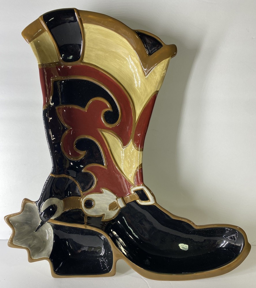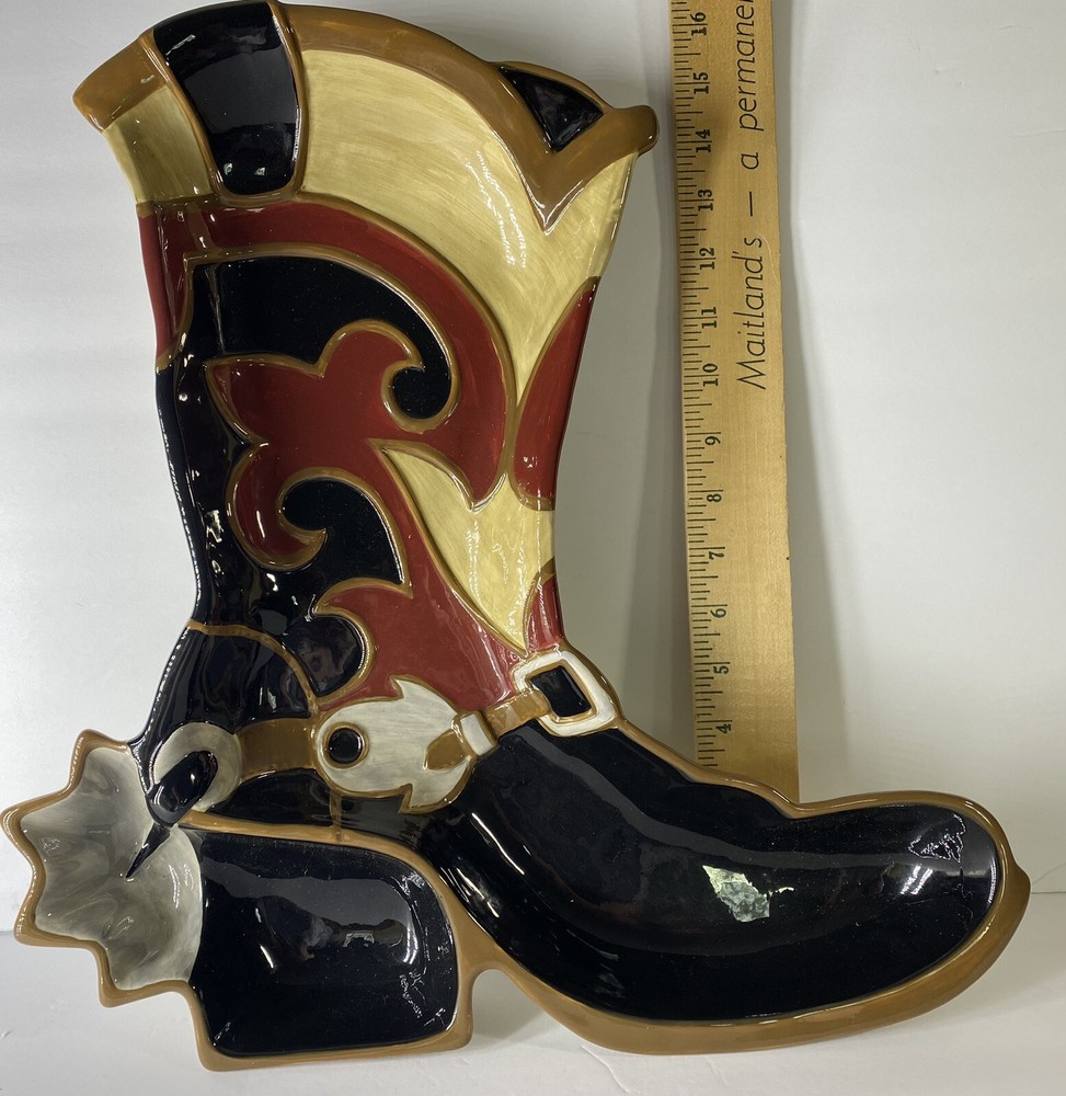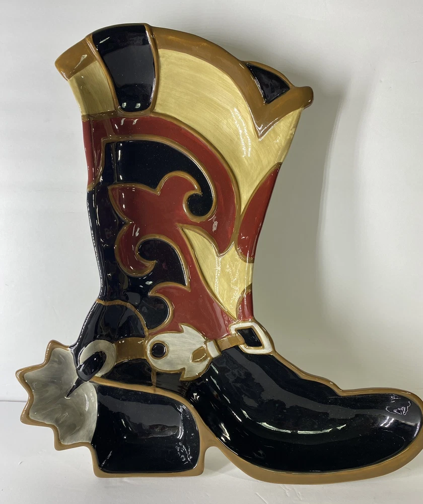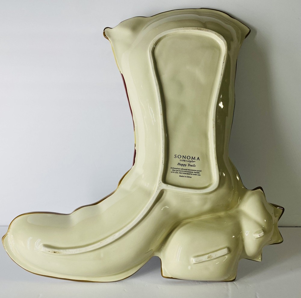 SONOMA HAPPY TRAILS CHIP/DIP SERVING TRAY WESTERN COWBOY BOOT PLATTER RED BLACK. Condition is Used. Shipped with USPS Ground Advantage....