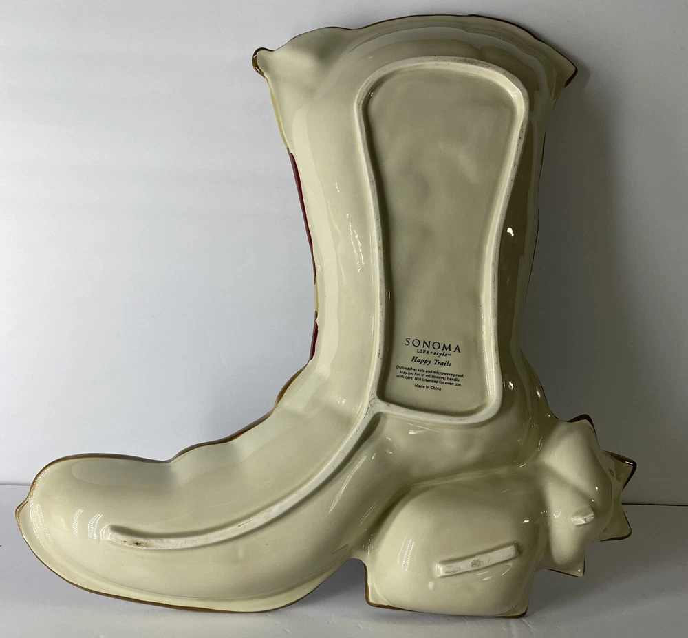SONOMA HAPPY TRAILS CHIP/DIP SERVING TRAY WESTERN COWBOY BOOT PLATTER RED BLACK. Condition is Used. Shipped with USPS Ground Advantage.
