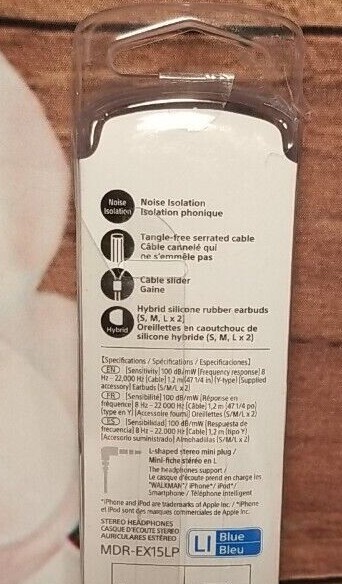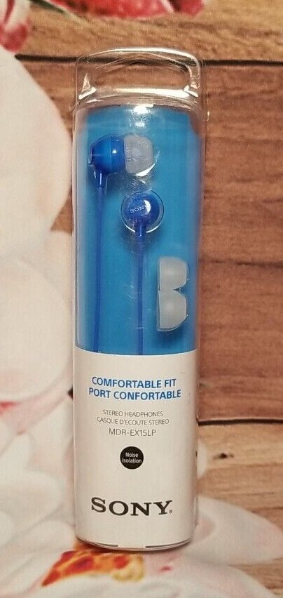 The Sony MDR EX15LP earbud headphones in blue and purple are part of the EX Series. These in-ear headphones feature a double earpiece design and connect via a 3.5mm jack. They offer a stylish and fashionable color option for music enthusiasts looking for a reliable audio accessory.