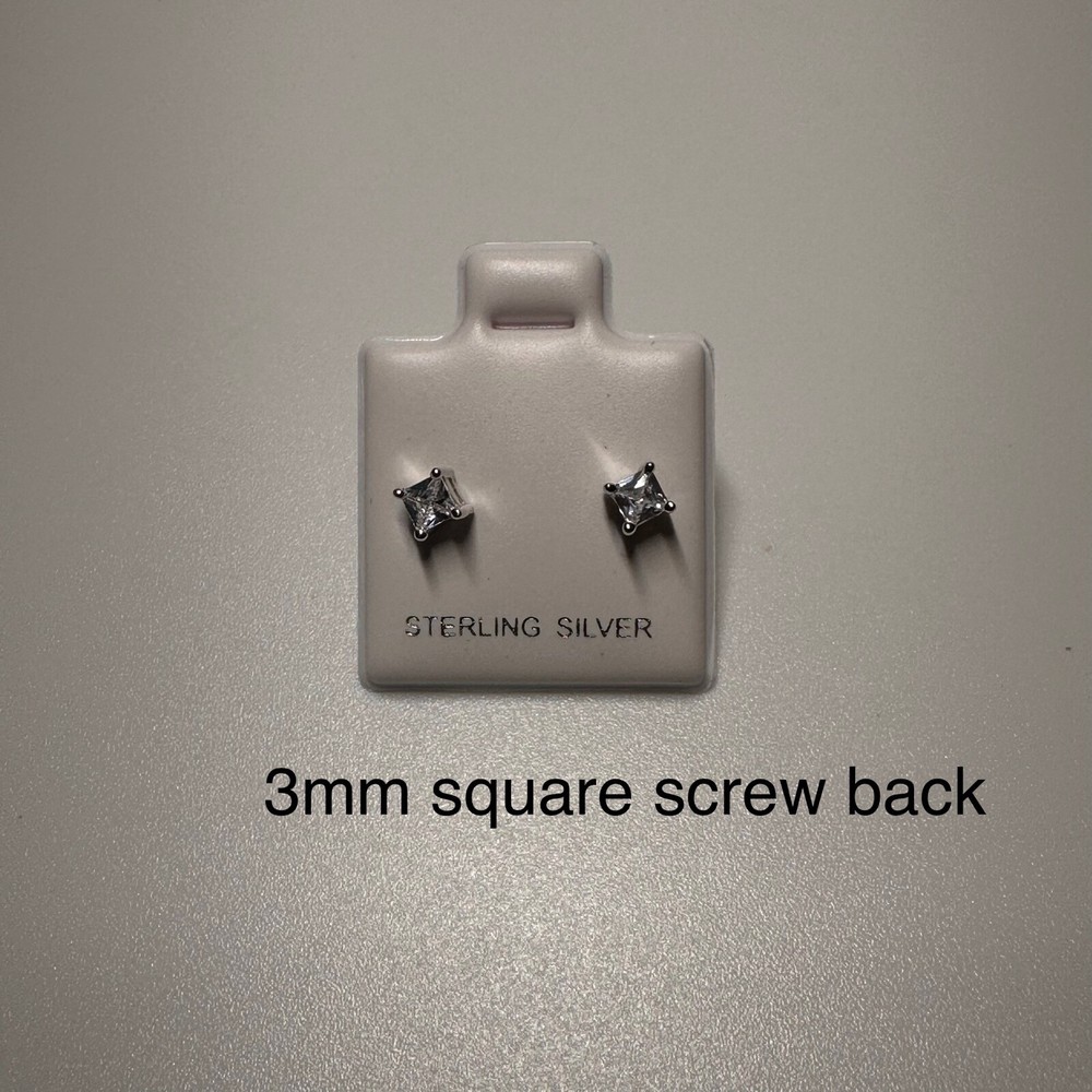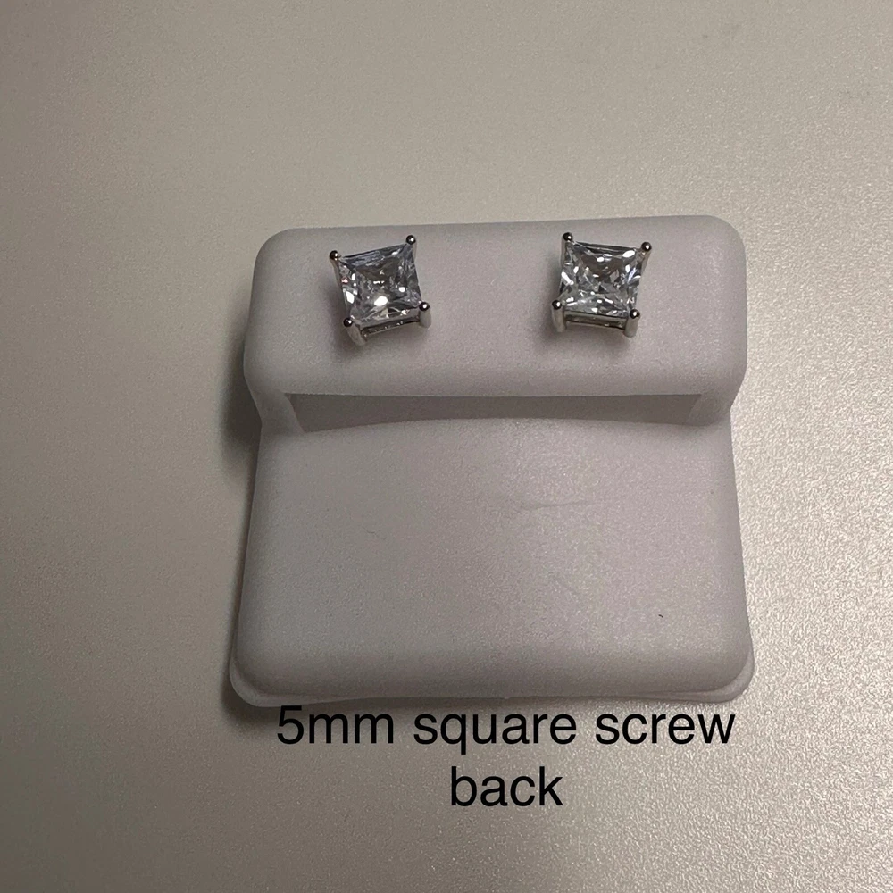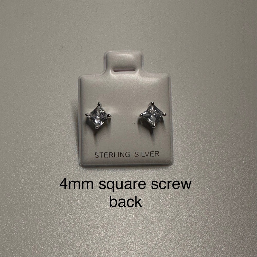 ROUND CUBIC ZIRCONIA SCREW BACK STUD EARRINGS 925 STERLING SILVER RHODIUM PLATED....