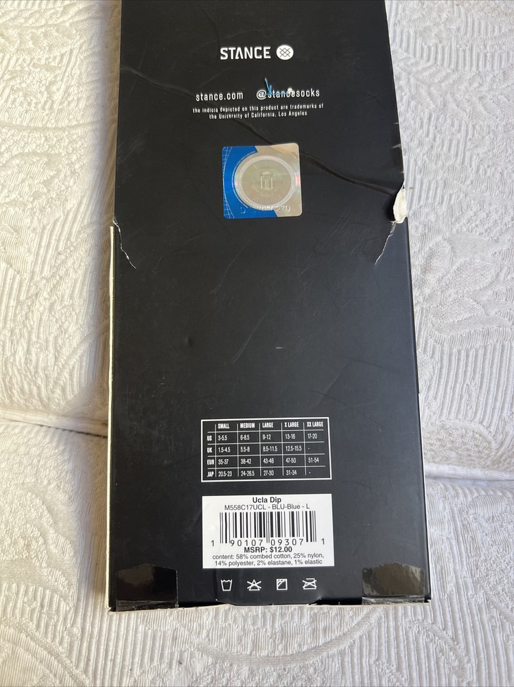 You are bidding on a STANCE UCLA Dip Crew Socks sz L Large (9-12) Yellow Blue Speckle Fade Bruins NEW\. The packaging has some wear from storage. See pictures for best details The item you are buying is the picture listed unless stated otherwise. Please contact me if you have questions. I want to keep my great positive rating. I will gladly work with you if there is a problem. I will always combine shipping for more than one purchase, so wait for an invoice for more than 1 purchase. Please check out my other items in my store. I mail out items 2 -3 times per week. Please pay within three days. Please visit my Store for more vintage treasures! eBay is a hobby of mine. I enjoy searching for that unexpected item. Most of the things I purchase, I get from estate sales.