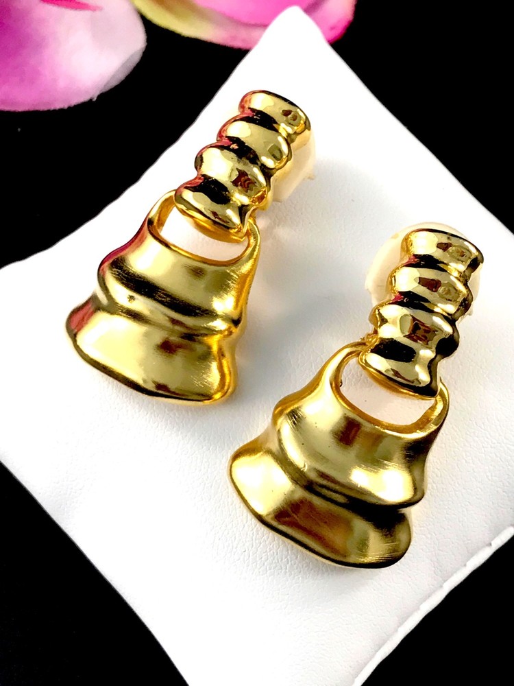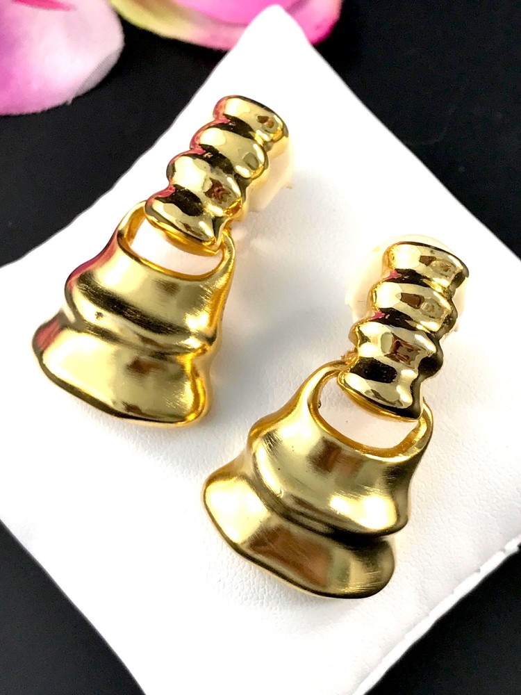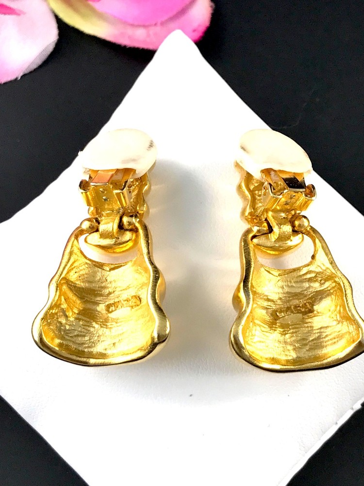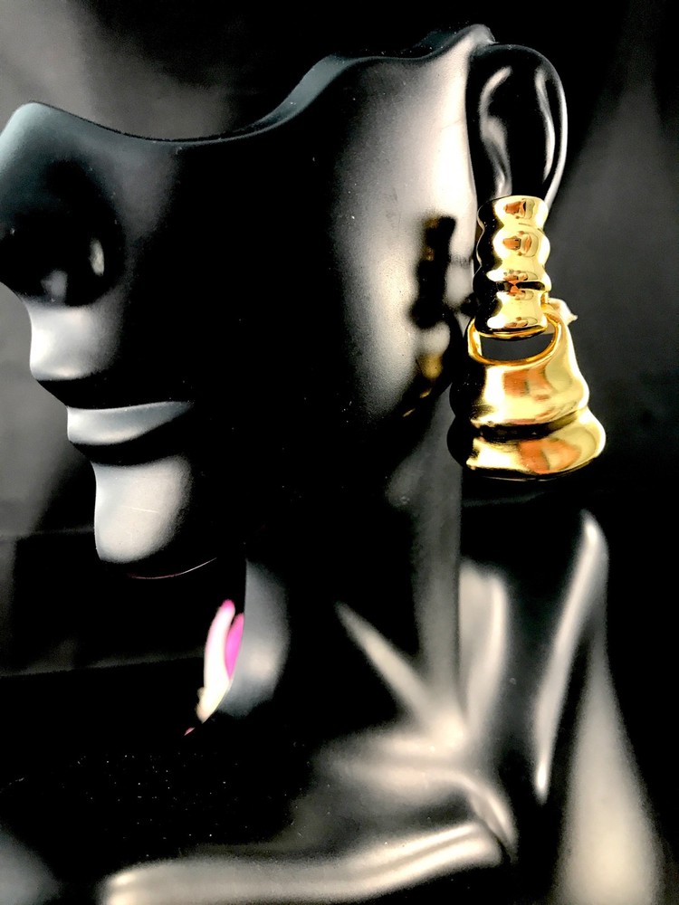 FOR YOUR KIND CONSIDERATION, A FABULOUS PAIR OF VINTAGE 1980’S DESIGNER MODERN AND BOLD BELL SHAPED DESIGN DANGLE CLIP EARRINGS FROM CLARA (KASAVINA) STUDIO. INCREDIBLE STYLING - BIG AND BOLD. THE EARRINGS ARE IN EXCELLENT VINTAGE CONDITION. THE EARRINGS ARE SIGNED ON THE REVERSE WITH THE CLARA STUDIO MARK. MEASUREMENT: 1” WIDE AND 1.5” TALL. View more great items