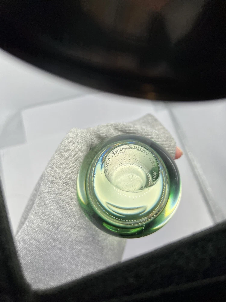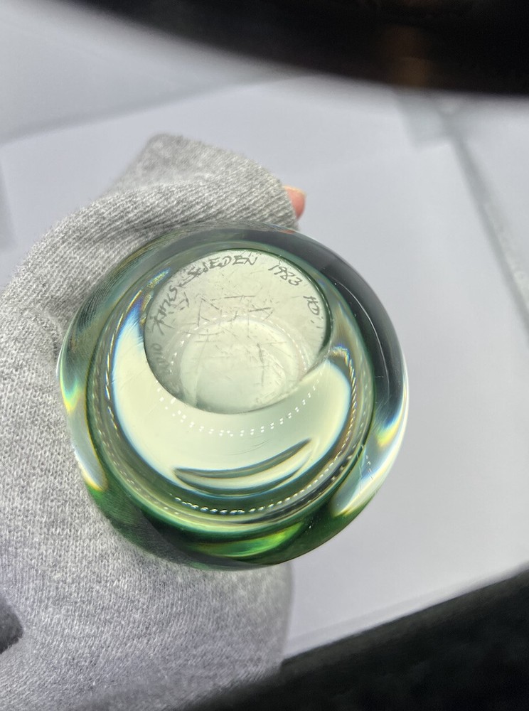 STUDIO AHUS SWEDEN STUDIO ART GLASS GREEN TINT PEAR SHAPED PAPERWEIGHT - 1983. 🌸🌵 ✨We are OPEN to ALL reasonable offers & we accept 99% of ALL OFFERS made via the OFFER BUTTON, seriously-make us an offer!!✨ No handling fees. Please examine all pics as this is the exact item you will be receiving ❤️ All else sold separately Blessed be We strive to choose the most cost effective shipping method, which sometimes may take a bit longer (FedEx SmartPost, USPS, or UPS are some methods-however if you would like to receive it faster, let us know and I can switch the shipping to a faster method-which will inevitably affect the cost to ship) Feel free to message us prior to purchase and we can switch that over for you. Thank you again for looking, and please follow our store, Designer To You, for hundreds of newly listed treasures added weekly!! Cross posted and promoted on many platforms-so please send us an offer before this treasure sells elsewhere! We do accept 99% of ALL offers made via the OFFER button Many blessings to you and yours Since most vintage items are no longer produced, we remain incredibly passionate and motivated to keep these beautiful treasures of yesteryears out of the Earth’s landfills- and into a NEW home-hopefully with YOU. Thank you for supporting our family run buisness. Blessed be ☽This will go AMAZING with ALL Rae Dunn including; Joanna Parker, Mackenzie Childs, reindeer snacks cellar, love gnomes, farmhouse shabby chic, target bullseye and all tiered tray MCM, art decor, Mid century modern, glassware. ✨I record EVERY sale to prevent fraudulent claims ✨ Thanks for looking! ***********