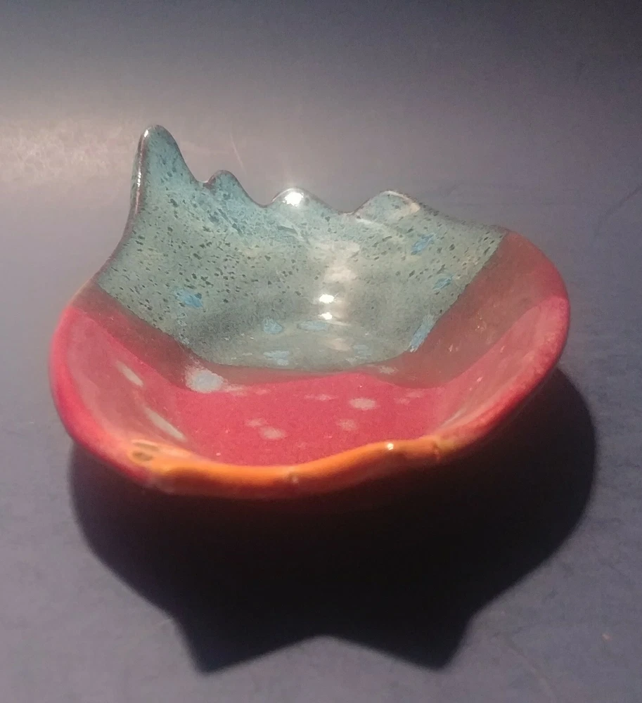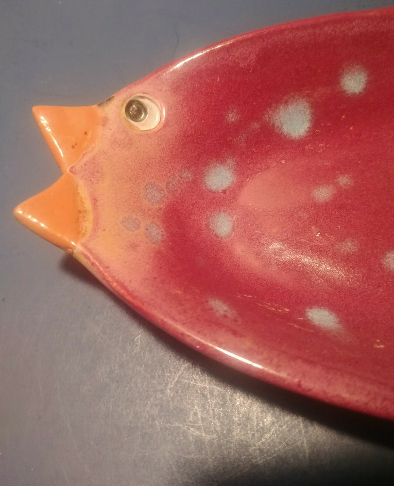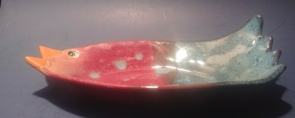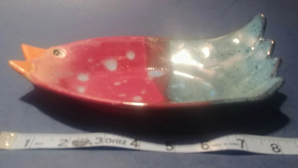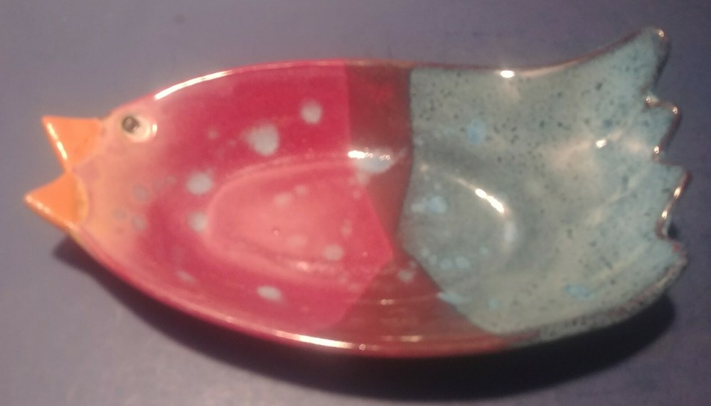 STUDIO ART POTTERY Bird SHAPED Dish BLUE/Red GLAZE CERAMIC ARTIST INITIALS 9". This Dish is in very good preowned condition.See pictures for more details. #B