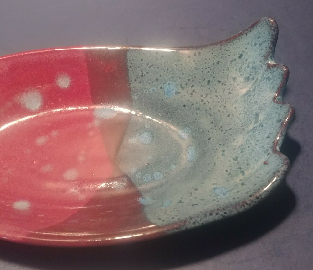 STUDIO ART POTTERY Bird SHAPED Dish BLUE/Red GLAZE CERAMIC ARTIST INITIALS 9". This Dish is in very good preowned condition.See pictures for more details. #B...