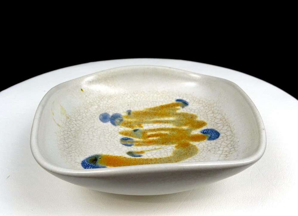 STUDIO ART POTTERY CRACKLE GLAZE FREE FORM DESIGN 6 3/8" SQUARE BOWL STUDIO ART POTTERY CRACKLE GLAZE FREE FORM DESIGN 6 3/8" SQUARE BOWL Click images to enlarge Description STUDIO ART POTTERY CRACKLE GLAZE FREE FORM DESIGN 6 3/8" SQUARE BOWL This is in Excellent Condition with No Chips No Cracks NOTE: There is some light crazing. Very Nice Studio Art Pottery Bowl. This features a square shape with a light tan ground and a free form design in the center in tan and blue. There is a crackle glazed finish, creating an older look. This measures 1 3/4 " High x 6 3/8 " Wide rim to rim. I have provided a lot of pictures to best describe the condition of this bowl. Be sure to scroll down, look left. THERE ARE MORE PICTURES that do not appear in the top gallery. (The pictures are of the exact piece you will receive). Photography Props & photo stands are not included. This will have a VERY LOW BUY IT NOW PRICE OF JUST $74.95. Shipping should run around $15 TO $18 dollars depending on where your zip code is located. We are more than Happy to accommodate any shipping needs. Please email for International Shipping Rates. IMPORTANT NOTE FOR INTERNATIONAL BUYERS: Different countries may or may not charge an import tax on the value of the item purchased. Any import tax that could be charged is the buyer's responsibility. We are based in the US and are not well versed in each country's import tax regulations. In most cases all orders are shipped in one to three days after payment is received, in rare cases with large orders please allow more time. This is a Quality Piece and will have a shipping weight of about 4 Lbs. We can easily combine shipping with other orders. If you have any questions feel free to email anytime, Thanks. CHECK OUT AND SHIPPING Please pay for purchases promptly within 3 days. We Ship five days a week Monday through Friday on all paid in full orders after Pay Pal releases funds. An E-Check can take up to 5 days to clear Pay Pal before we able to ship. If there are any questions, feel free to email anytime. OTHER PAYMENT OPTIONS We accept Pay Pal. For other payment arrangements, message or email us. RETURN POLICY If for some reason your order is not as you expected it to be. Just let us know. Maybe something was accidentally over looked. We will do what is right and fair to make sure you as a buyer are taken care of. We want every buyer to have a positive experience with us. We will give a full refund upon return of the item. Usually return shipping is not paid. If you need to get in touch use the eBay Email from your order. We monitor emails regularly and will reply to you as fast as possible. Pictures sell! Auctiva offers Free Image Hosting and Editing. 300+ Listing Templates! Auctiva gets you noticed! The complete eBay Selling Solution.