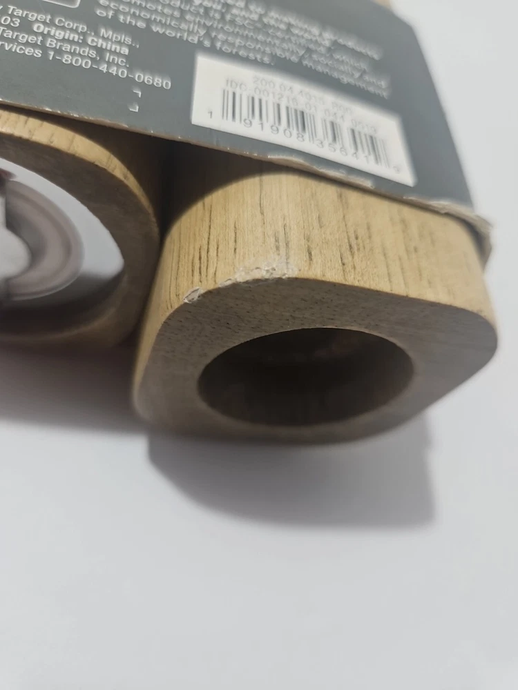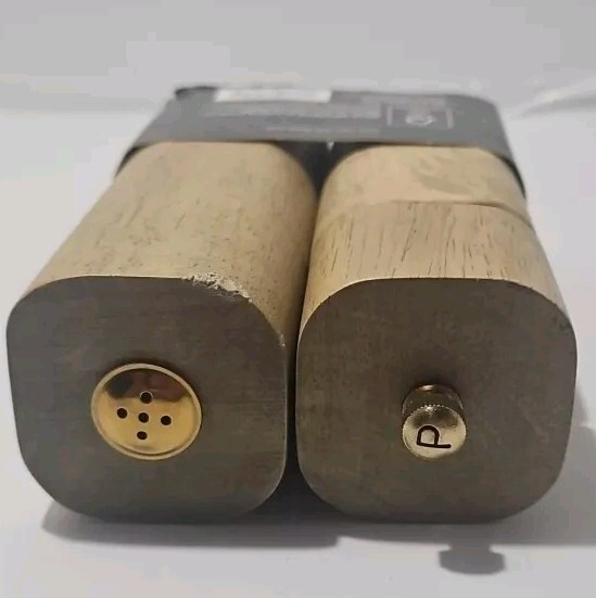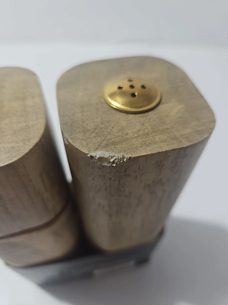 STUDIO MCGEE SALT AND PEPPER SHAKER Item is new, but there is a small nick on the top corner and the bottom corner of the salt shaker, which is hardly noticeable Picture is in the photos