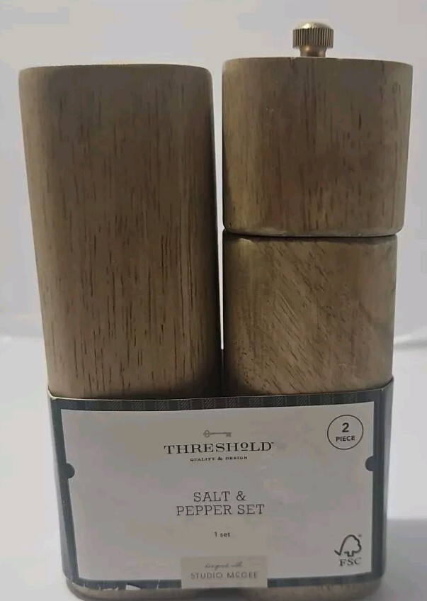 STUDIO MCGEE SALT AND PEPPER SHAKER Item is new, but there is a small nick on the top corner and the bottom corner of the salt shaker, which is hardly noticeable Picture is in the photos...