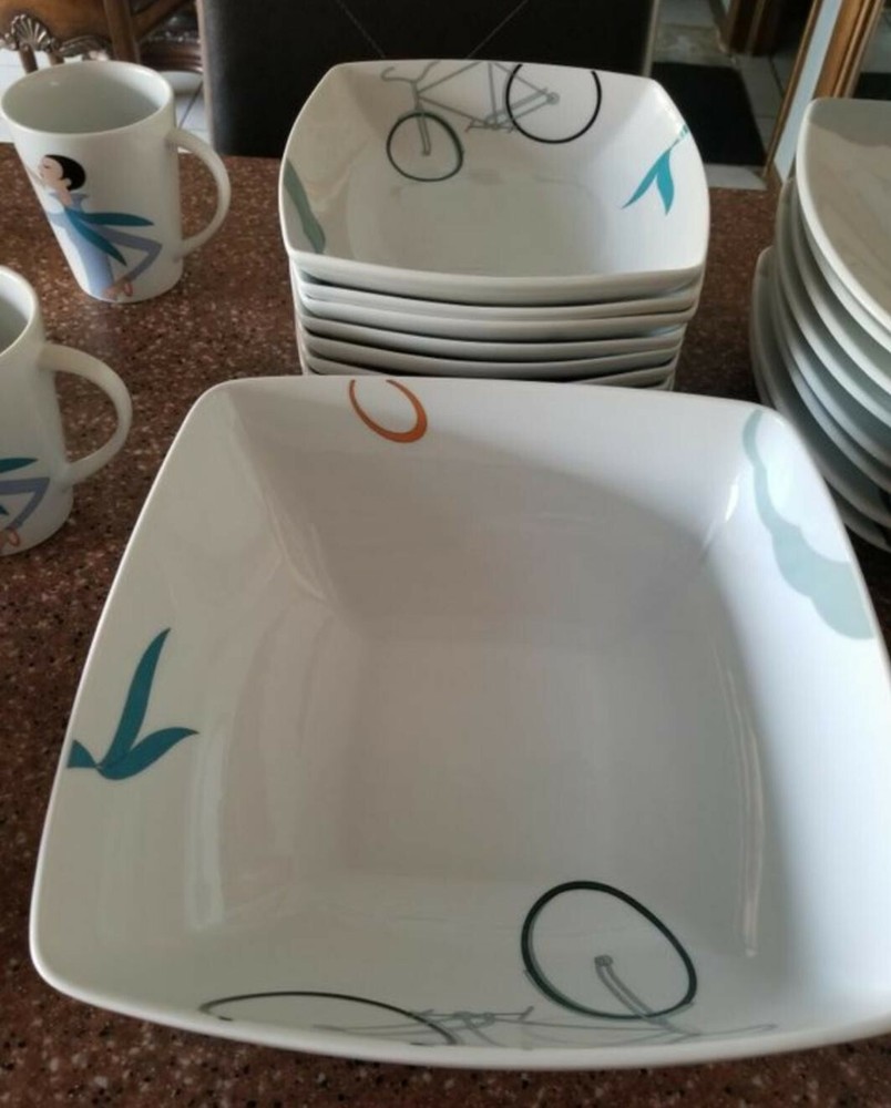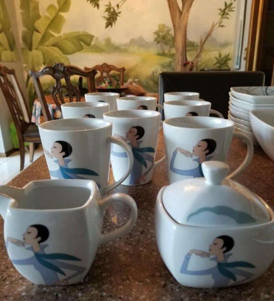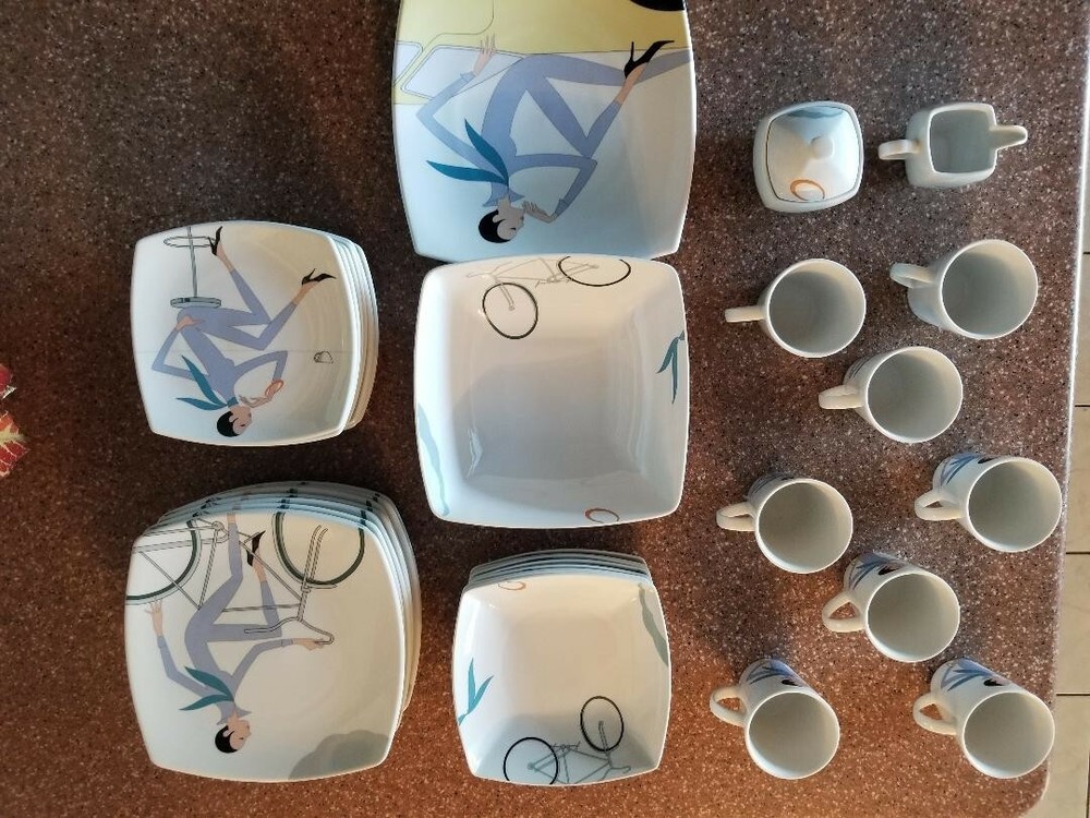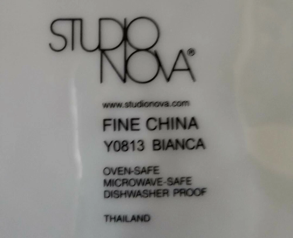 STUDIO NOVA FINE CHINA Y0813 BIANCA DINNER SET BY THAILAND. OVEN,MICRO,DISH SET. Condition is like new. USED ONLY ONCE ...Paid $1200.... Includes 1 large centerpiece plate, 1 creamer and sugar mug, 8 mugs, 8 soup and salad bowls, 8 entree and desert plates. Shipped with USPS Priority Mail.