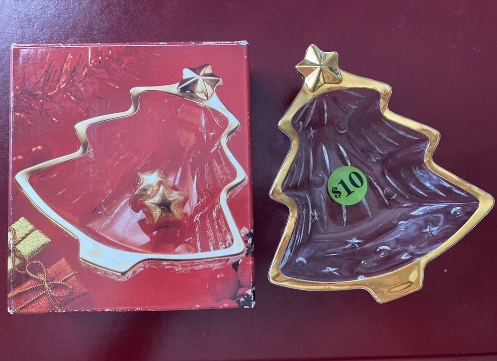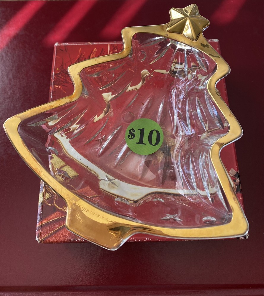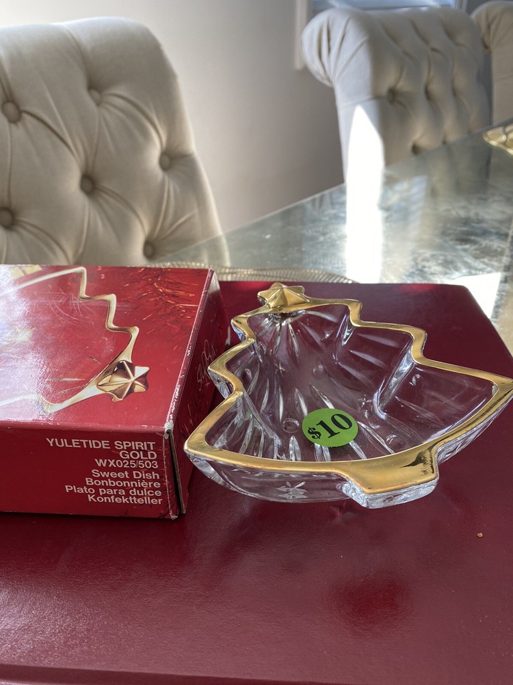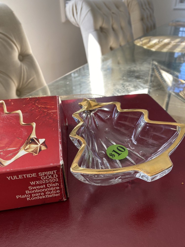 Get in the holiday spirit with this stunning gold-trimmed candy dish from Studio Nova. The Christmas tree-shaped glass bowl is perfect for displaying sweet treats during the festive season. Made from high-quality crystal, this dish is sure to impress your guests and add a touch of elegance to your holiday décor. The design features intricate details, with a beautiful gold trim and a colorful Christmas tree theme. This candy dish is a must-have for anyone looking to add some holiday cheer to their home.