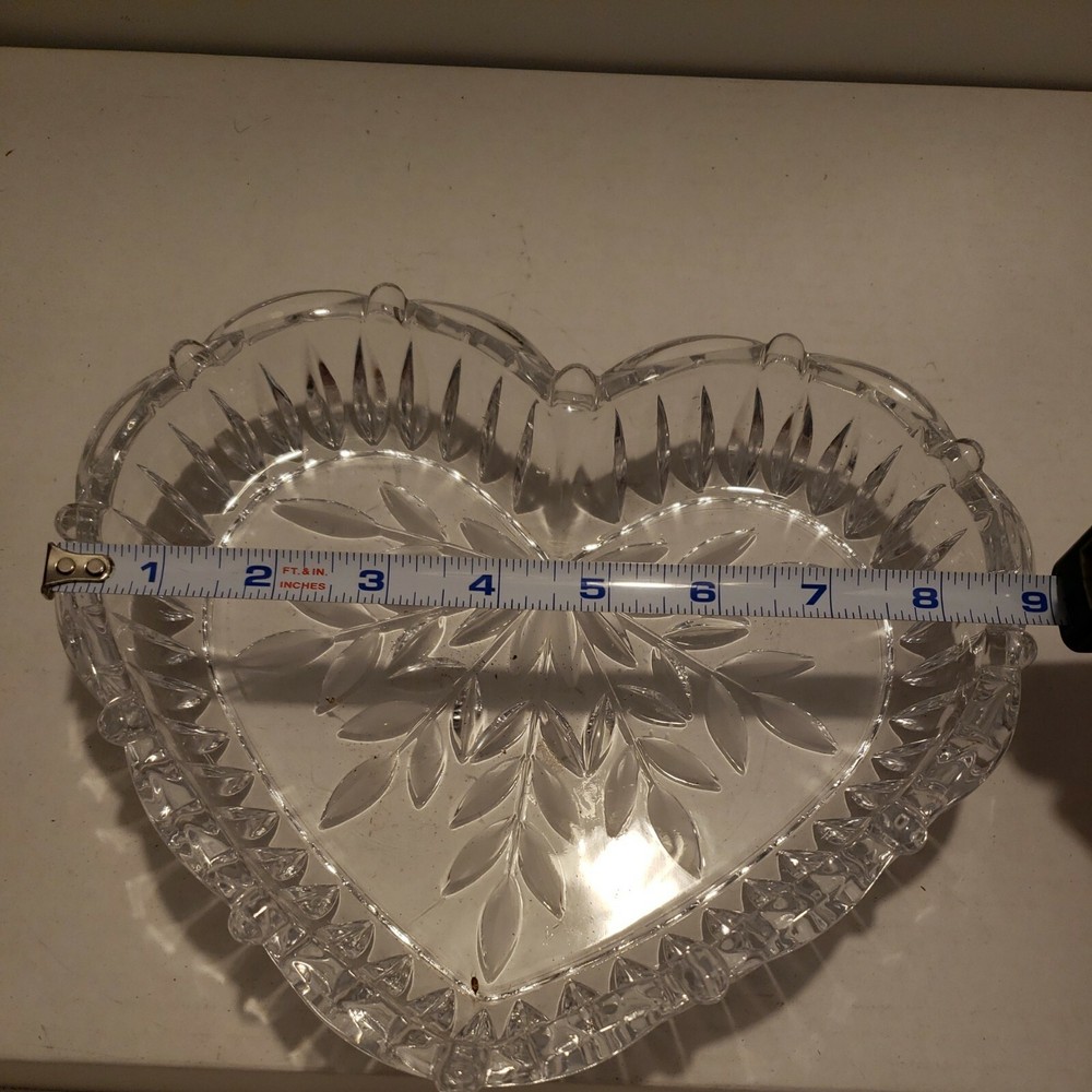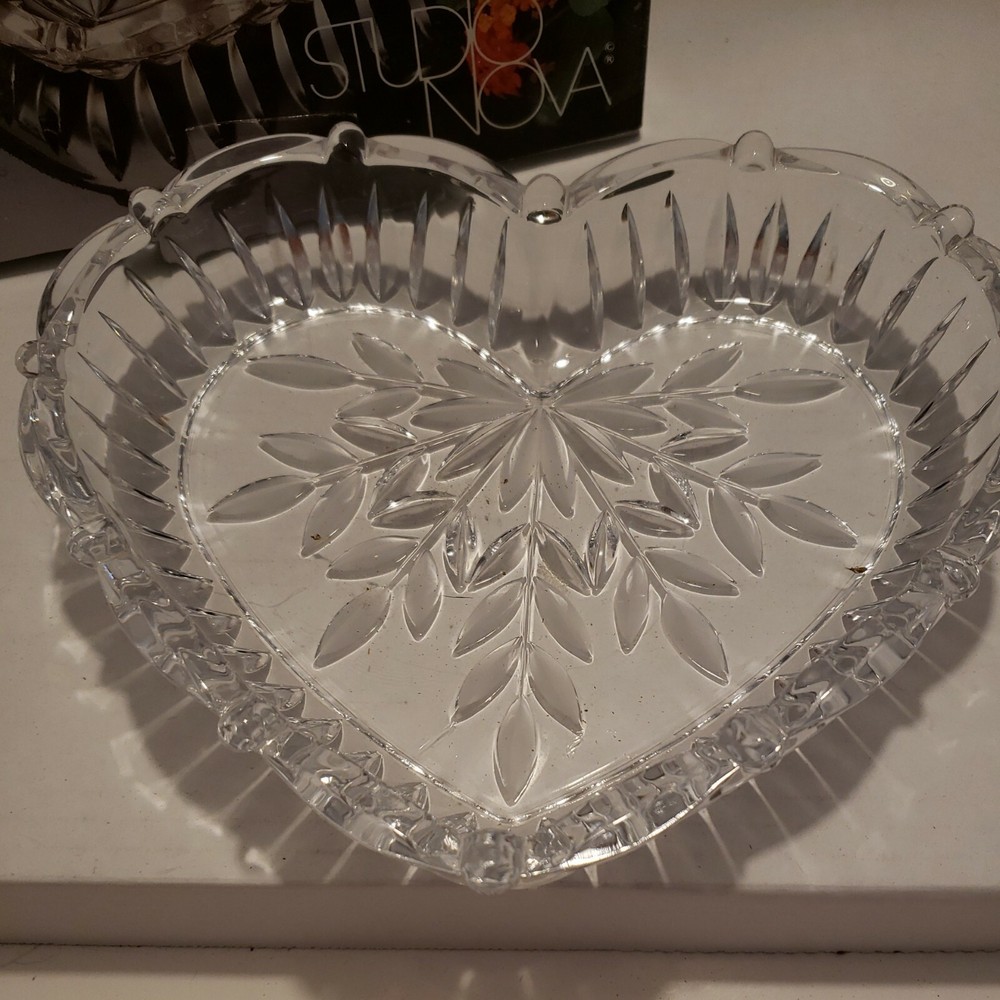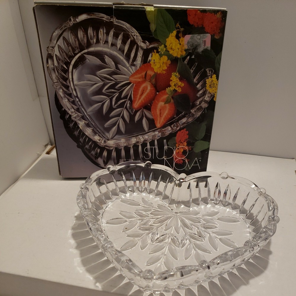 Elevate your home decor with the STUDIO NOVA Crystal Heart Shaped Bowl, an exquisite piece that exudes elegance. Masterfully crafted from clear crystal, this 9" diameter bowl features a stunning heart shape with intricate cut leaf details, making it a perfect centerpiece or a sophisticated addition to your table setting. The bowl's timeless design, combined with its sparkling crystal material, captures and reflects light beautifully, creating a delightful visual effect. Whether used as a candy dish, a trinket holder, or simply as a decorative piece, this crystal bowl is versatile and suitable for various occasions. Its heart motif makes it an ideal choice for Valentine's Day or to express love and appreciation. The bowl's dimensions, including a depth of 1.5" and a length and width of 9", make it a substantial yet fitting accessory for your living space or special events.