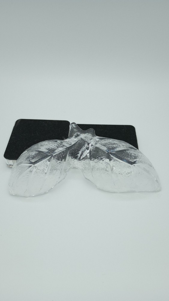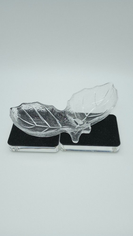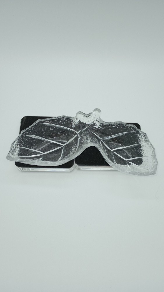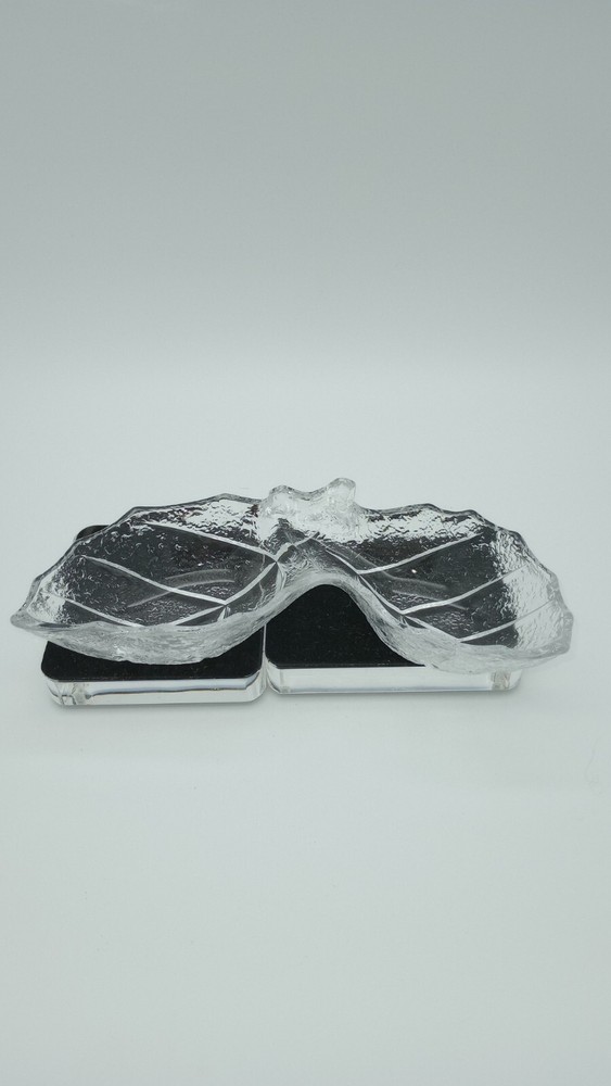 This exquisite Studio Nova DOUBLE LEAF CANDY dish is a beautiful addition to any decorative collection. The dish is crafted from high-quality clear glass material with a vintage touch. The dish is designed with two compartments and shaped like a leaf, adding a touch of nature to your decor. The dish is perfect for holding candy, nuts, or trinkets. It is an original production from Japan and belongs to the Candlewick product line. This unique decorative bowl is a must-have for collectors and enthusiasts alike. Get your hands on this new old stock item today!