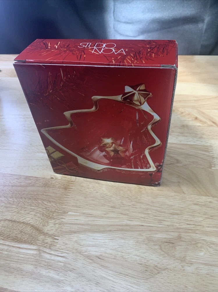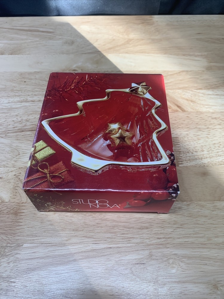 STUDIO NOVA Yuletide Spirit Gold Trim Christmas Tree Shaped Glass Sweet Dish. See pictures for items current condition as it is apart of this description. Shop more and Save on shipping!!! Shipping will be calculated off of highest shipping rate and then each additional item will be $1.00! Check out my store for more cool stuff. Thank you for looking.