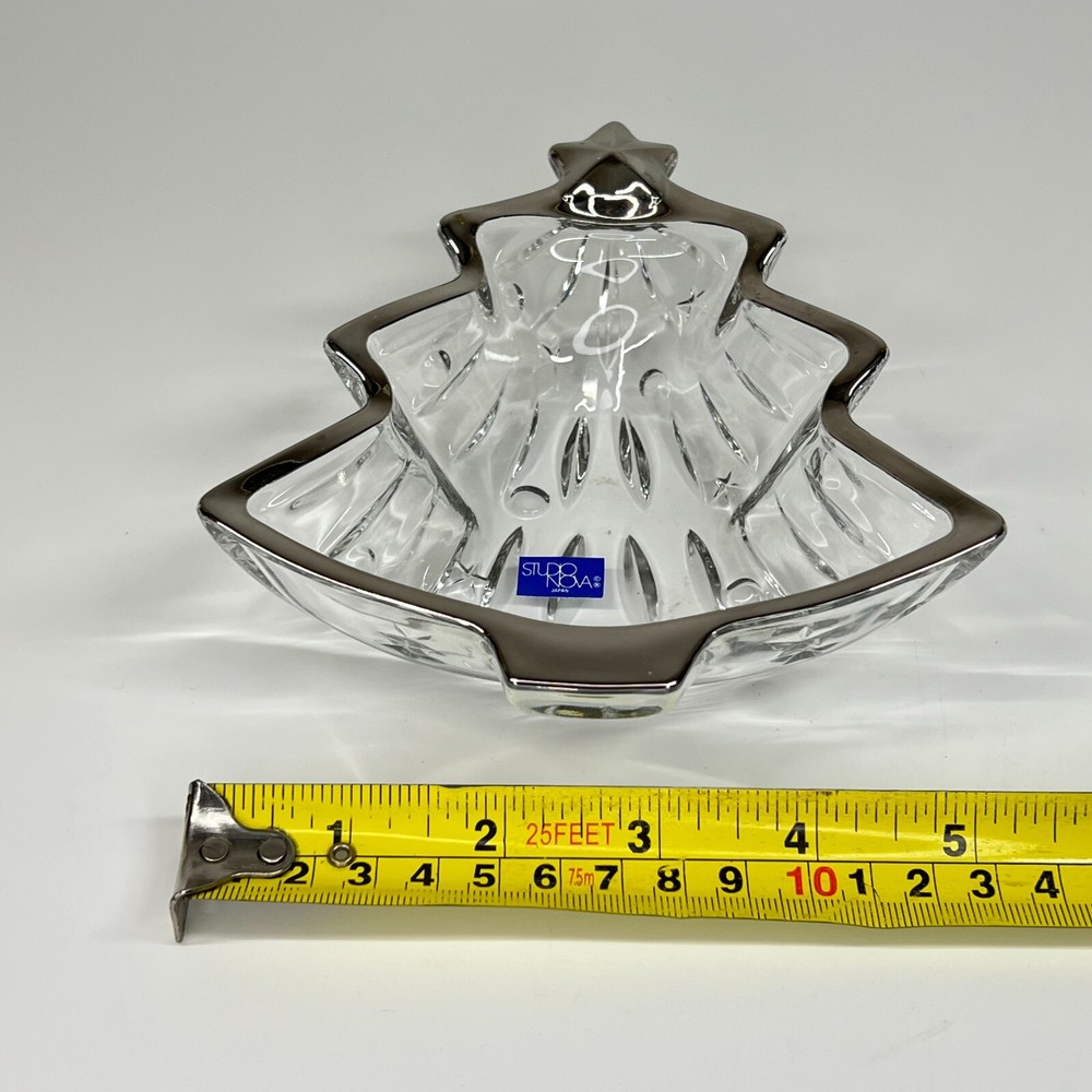 This festive glass sweet dish is absolutely stunning! The gold trim adds a touch of elegance, and the Christmas tree shape is perfect for holiday treats. Looks brand new and arrived safely in its original packaging. A beautiful addition to my holiday decor!