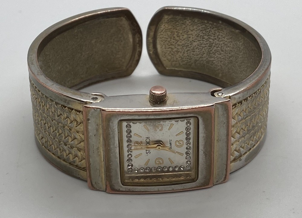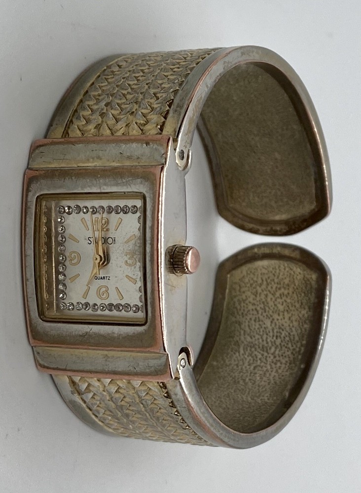 Studio Time ladies hinged bangle watch with new battery installed Fits 6β Wrists well Keeps good time Any issues upon receiving the watch please contact meπ...