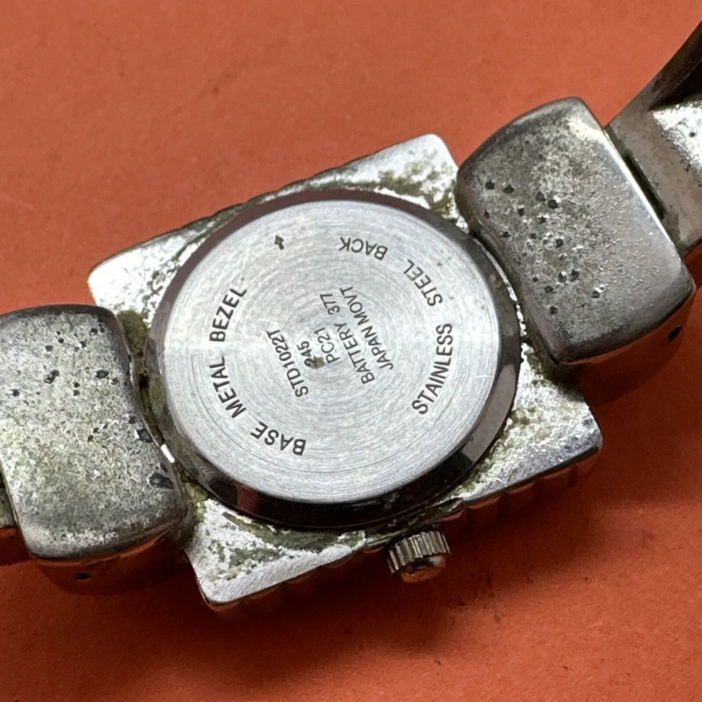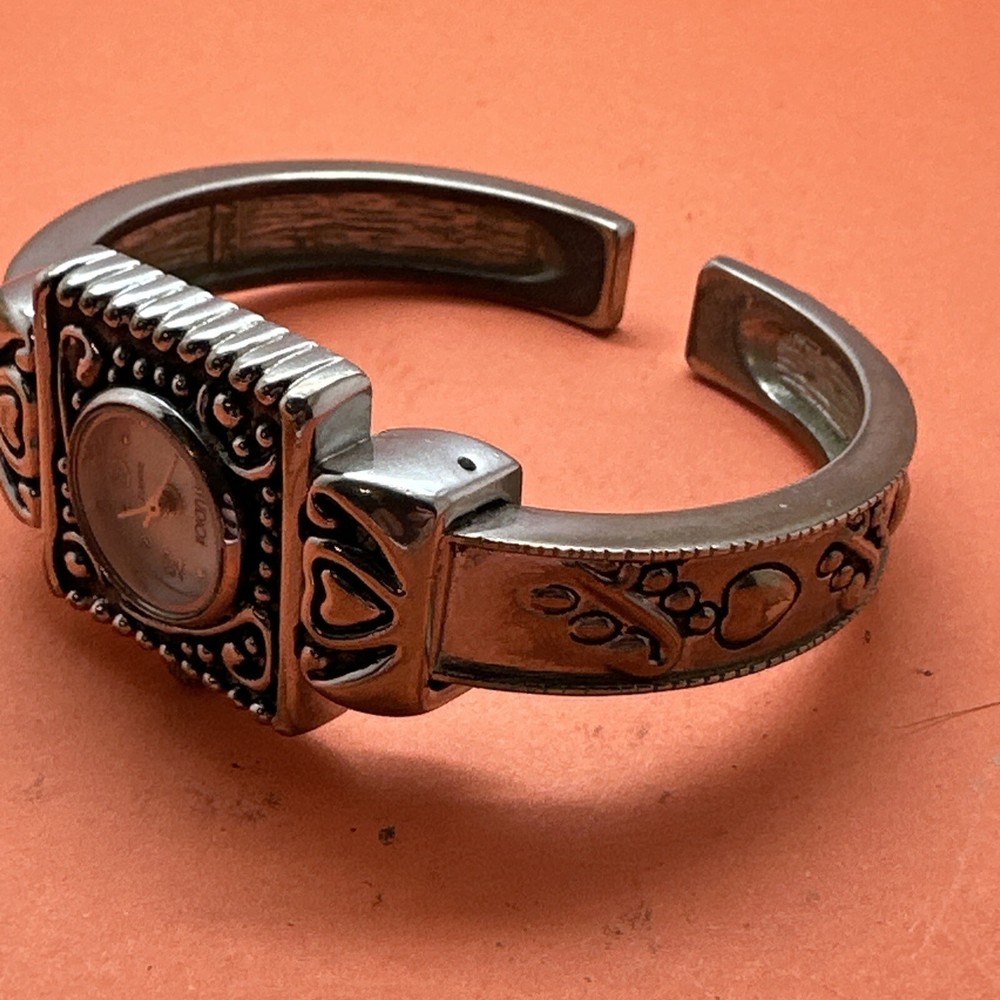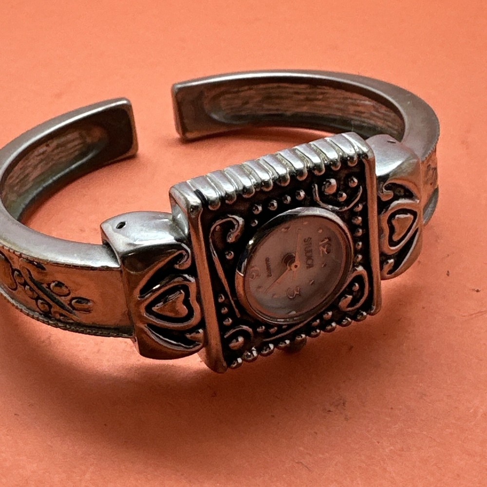 STUDIO TIME Silver Tone Studded Cuff Ladies Watch Large Dial and Cuff New Batt. Condition is Pre-owned. Shipped with USPS First Class.