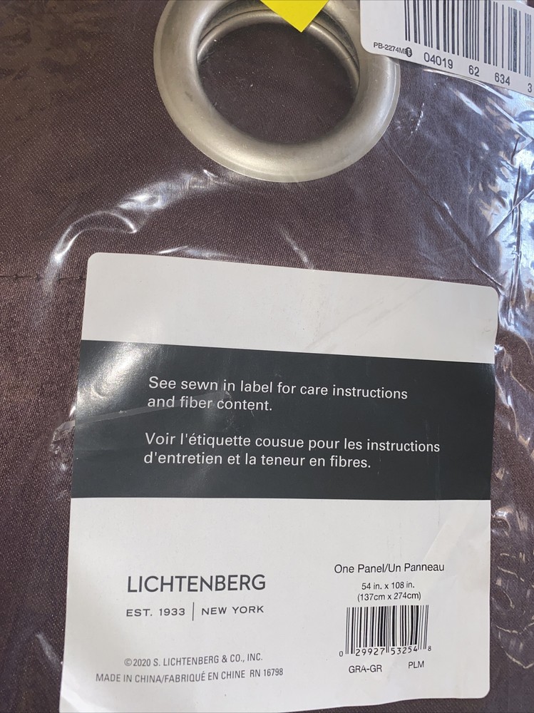 SUN ZERO Bella 108-Inch Grommet Window Curtain Panel in Plum, New ONE PANEL....