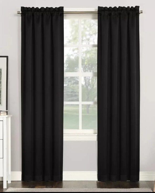 Add a touch of elegance to any room with the Sun Zero Kenneth Energy Saving Blackout Rod Pocket Single Curtain Panel. This panel, measuring 40x84 inches, features a solid pattern in black and a rod pocket heading for easy installation. It is made of high-quality polyester material and provides blackout transparency, making it perfect for any room in your home that requires privacy and comfort. The brand Sun Zero is known for its high-quality and energy-saving curtains and drapes, and this panel is no exception. With its California Prop 65 Warning, you can be assured of its safety and quality. Upgrade your home decor with this stylish and functional Sun Zero Kenneth Energy Saving Blackout Rod Pocket Single Curtain Panel. 28 29